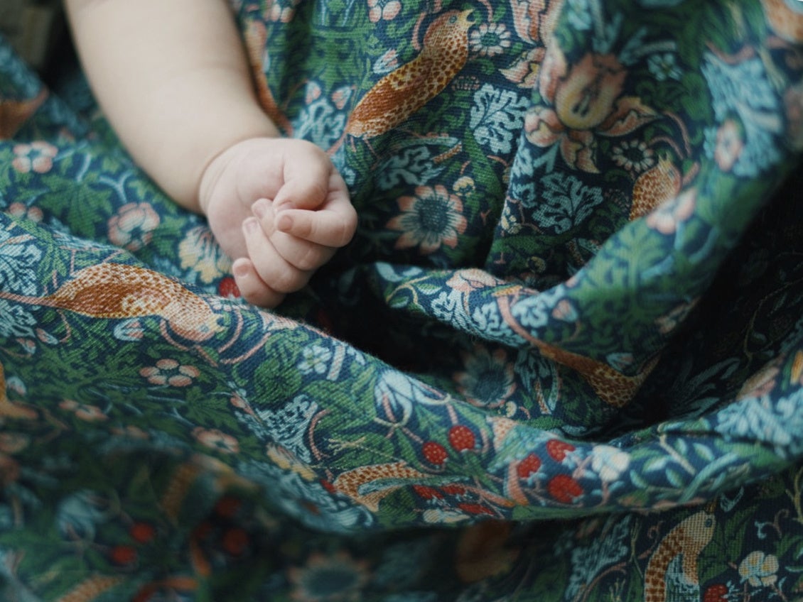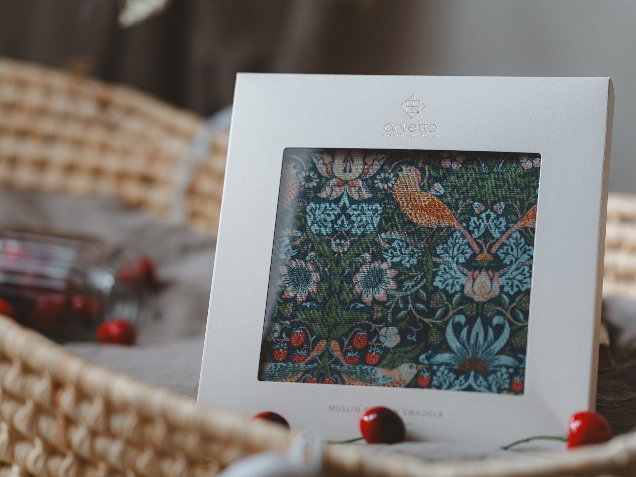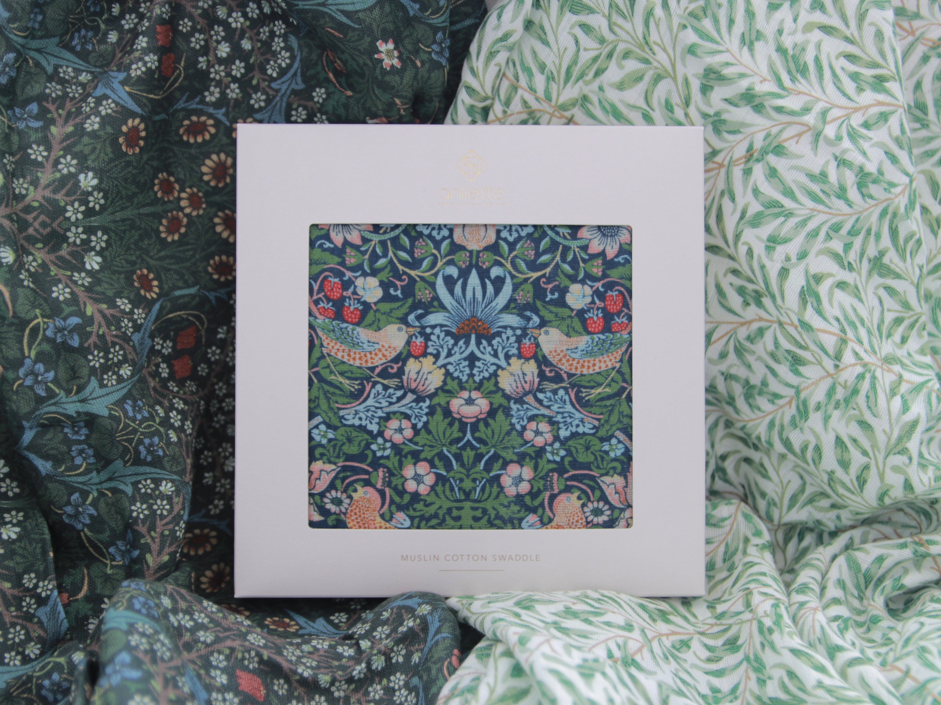 【花束スワドル】出産祝いに「いちご泥棒」のおくるみを!人気のウィリアム・モリス コレクションに3種の新作登場