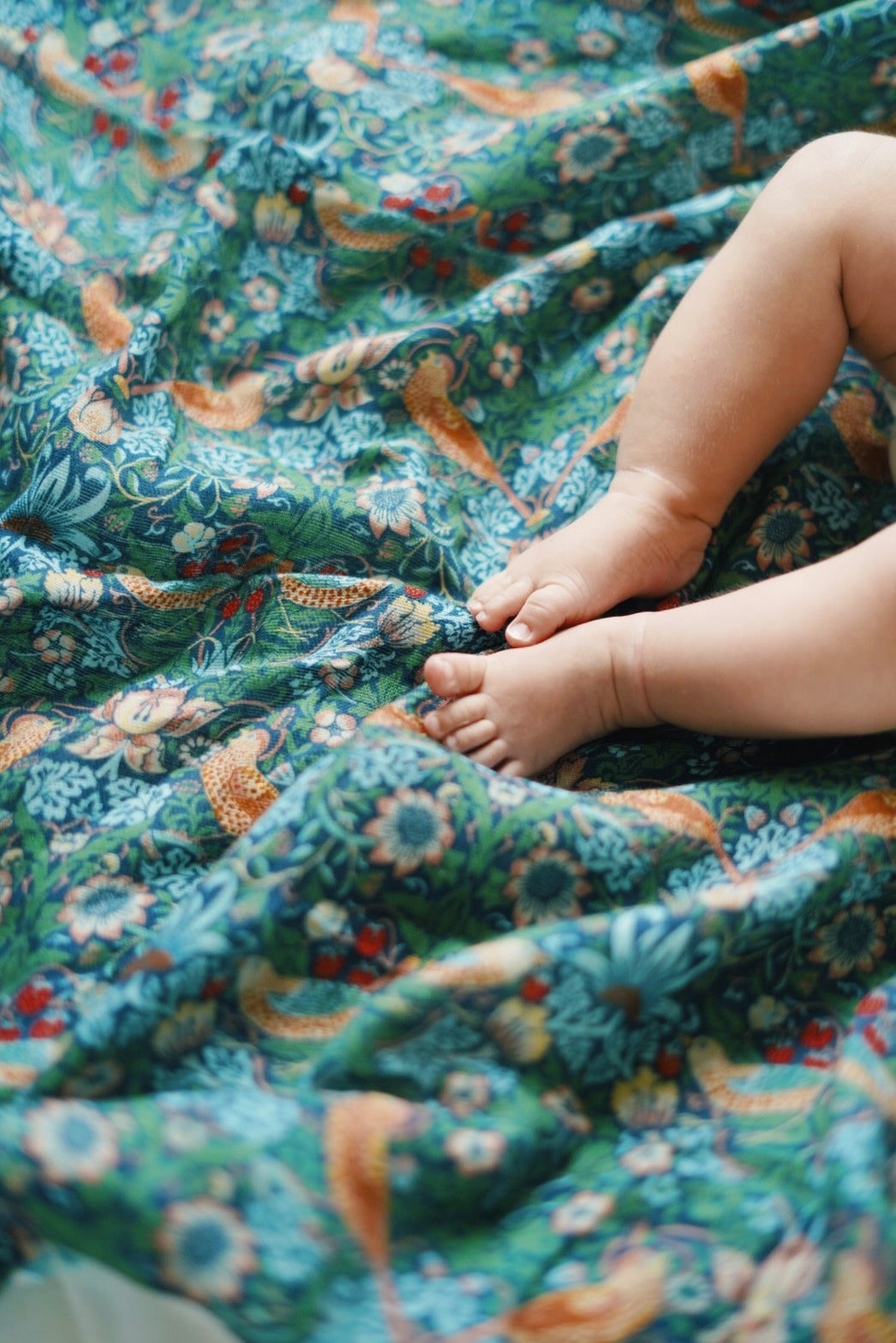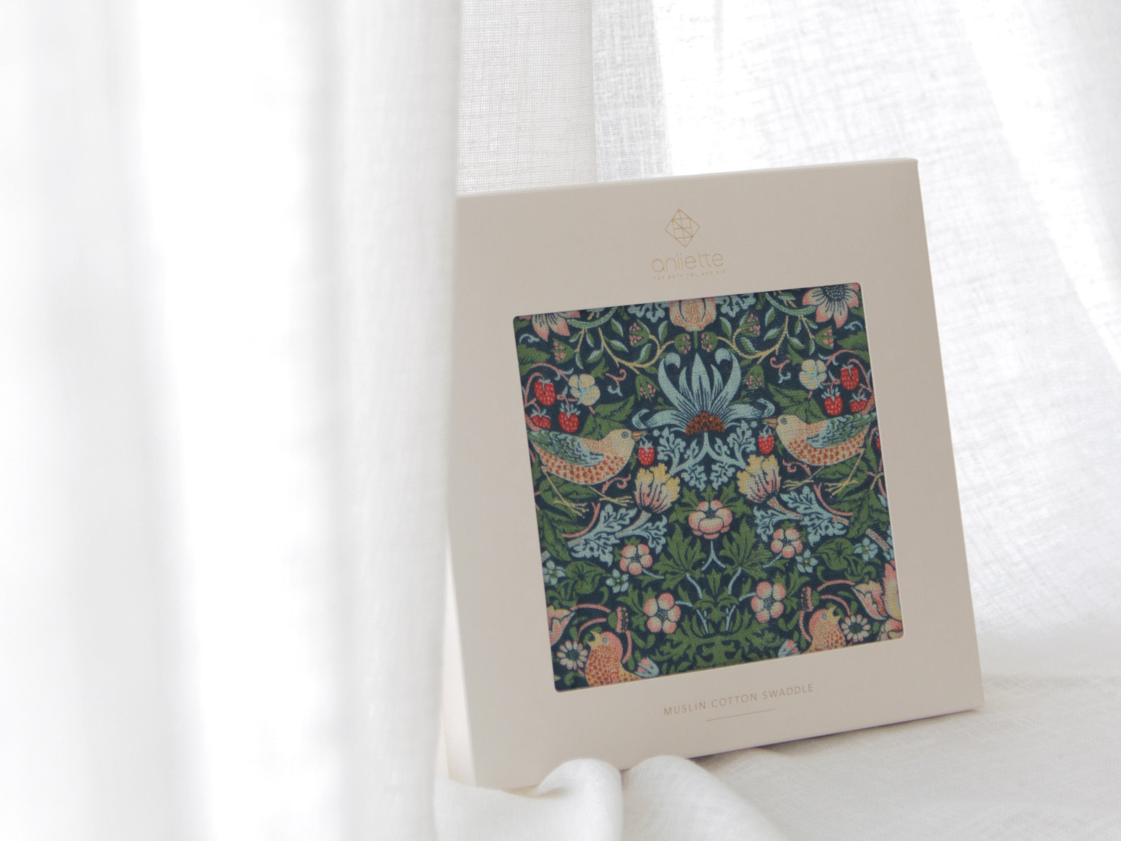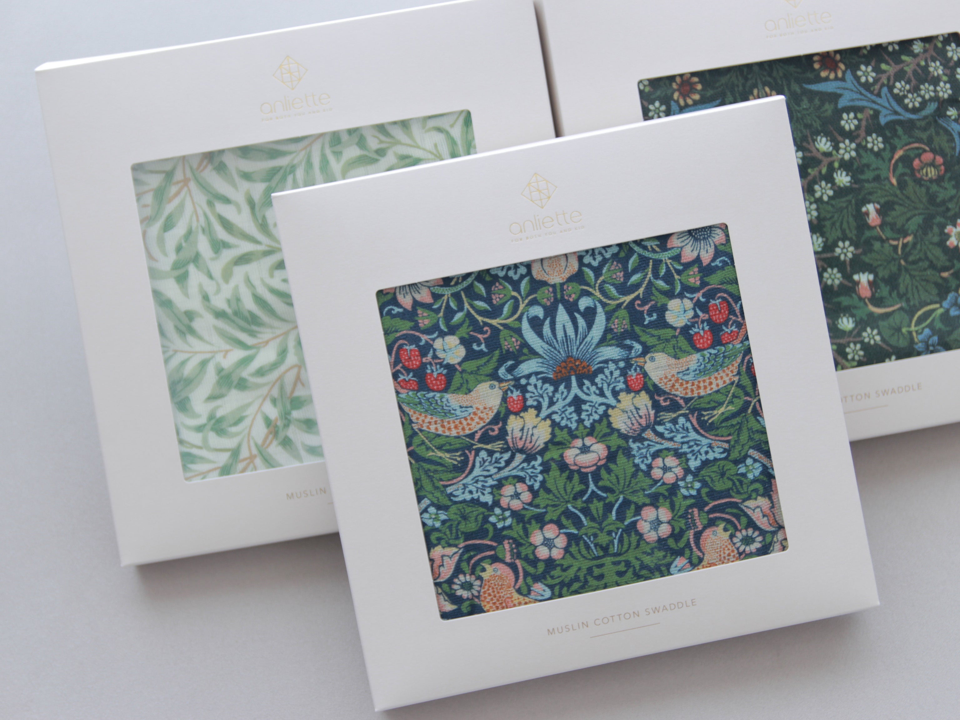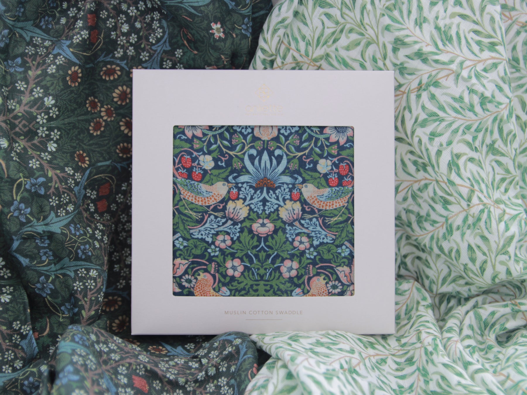 インテリアデザインやファッション雑貨としても人気のウィリアムモリスデザインの新作スワドル(おくるみ)は、赤ちゃんと過ごす時間を普遍的な美しいデザインとともに、より楽しく、心豊かに、穏やかに過ごせますようにというコンセプトで商品化しました。
