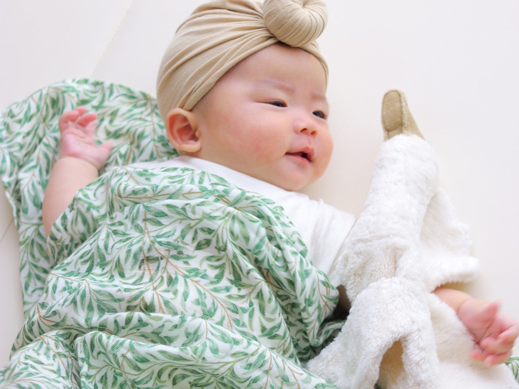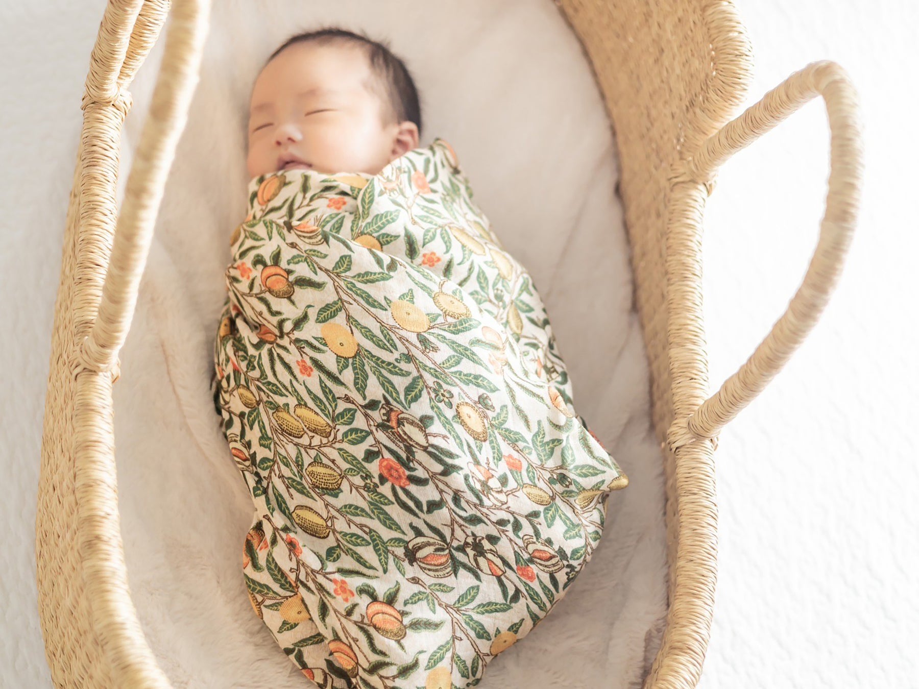 スワドル(おくるみ)は、赤ちゃんの眠りをサポートする大切なアイテムです。ご家族が赤ちゃんを大切に想う気持ちと共に、花束のようにやさしく赤ちゃんを包み込みます。何枚持っていても困らないと出産祝いとしても大変人気の高いアイテムです。
