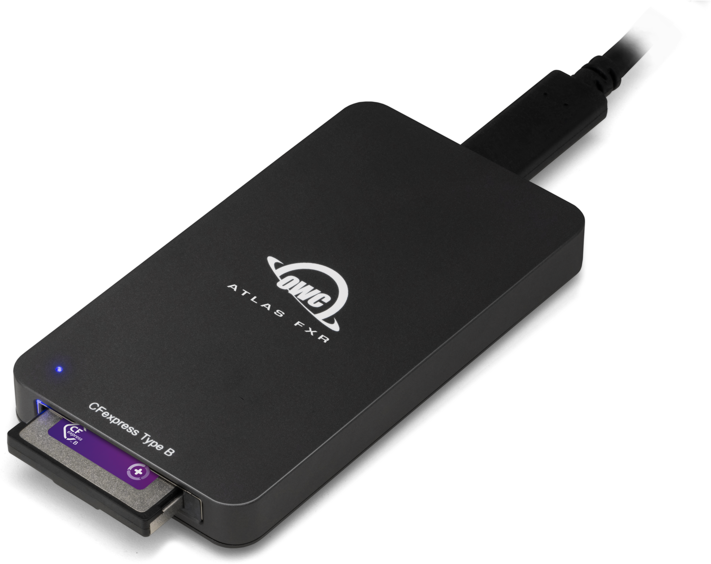 またCFexpress Type Bカードの高速転送を可能にする、Thunderbolt3対応Atlas FXRもラインナップしています。型番:OWCTB3CFXRDR