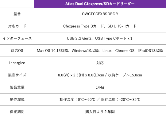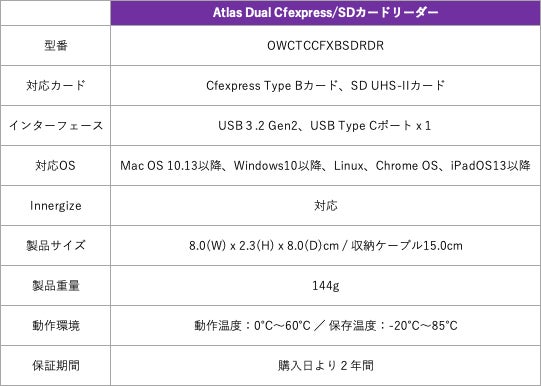 〜Atlas Dual CFexpress/SDカードリーダー、Innergize™️ソフトウェア日本同時リリース〜