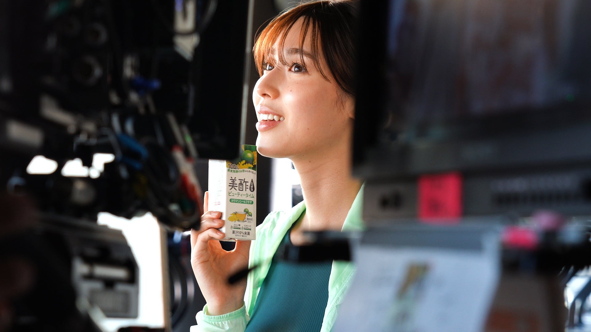 本CMは、希釈タイプの「美酢」「美酢プラス」と、ストレートタイプの「美酢 ビューティータイム」の2タイプそれぞれに合わせて制作しました。美酢は100%果実発酵酢から作った、美しい毎日をおくりたい方に向けたお酢です。CMでは、お家でのリラックスタイムや、会社、外でのランチタイム、スポーツジムなど、どんなシーンでも美酢を飲んで「きれいをはじめられる」ことを伝えます。白石さんが部屋着姿でキュートにダンスを踊る様子や、真面目モードなOL風ファッションからトレーニングウェアまで着こなす姿は必見です。