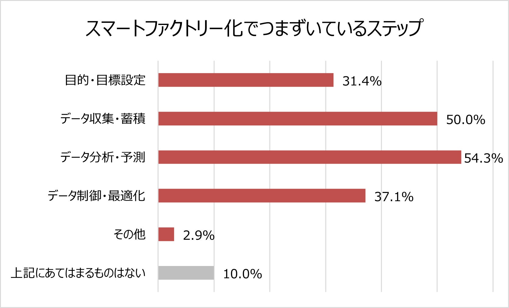 Q.どのようなステップでスマートファクトリー化につまずいていますか。(複数回答/n=70)