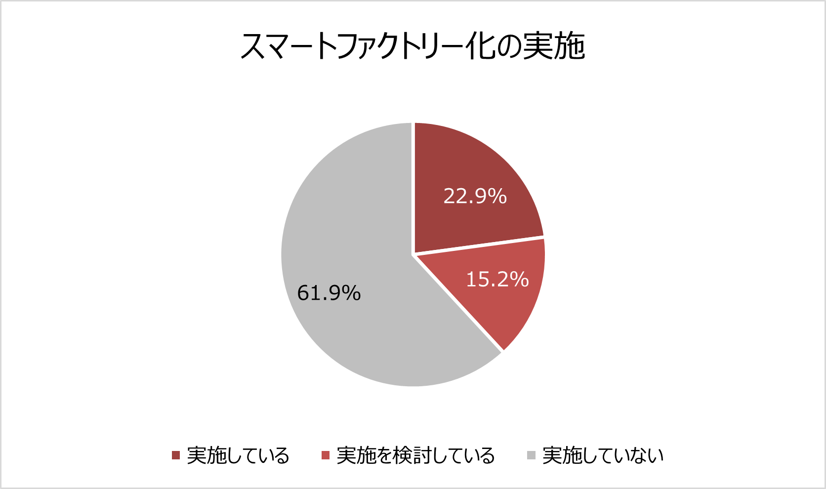 ・スクリーニング調査から、スマートファクトリー化を「実施している」と回答したのは22.9%にとどまる。「実施を検討している」との回答は15.2%。