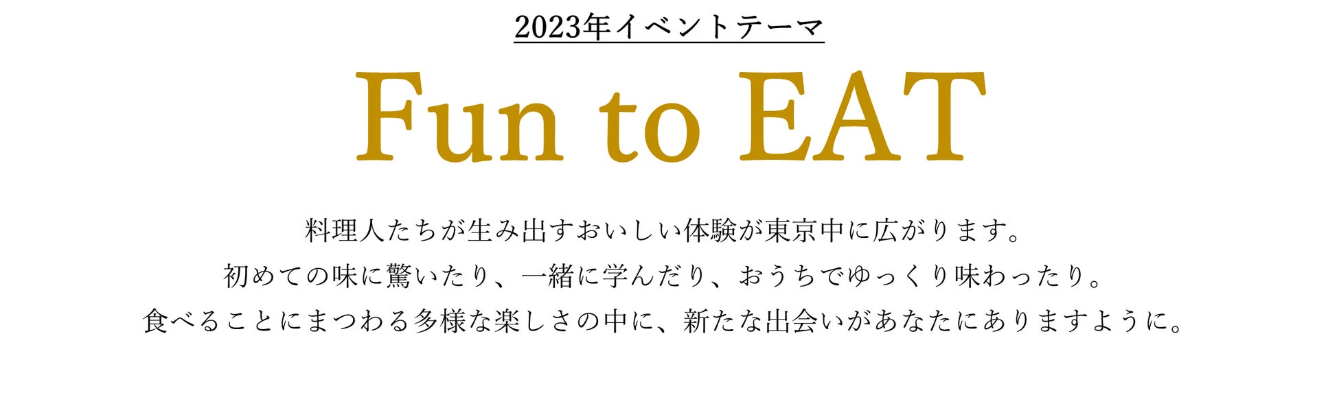 また、2023年のイベントテーマとして「Fun to EAT」を謳い、皆さまに“東京の食”をお届けいたします。