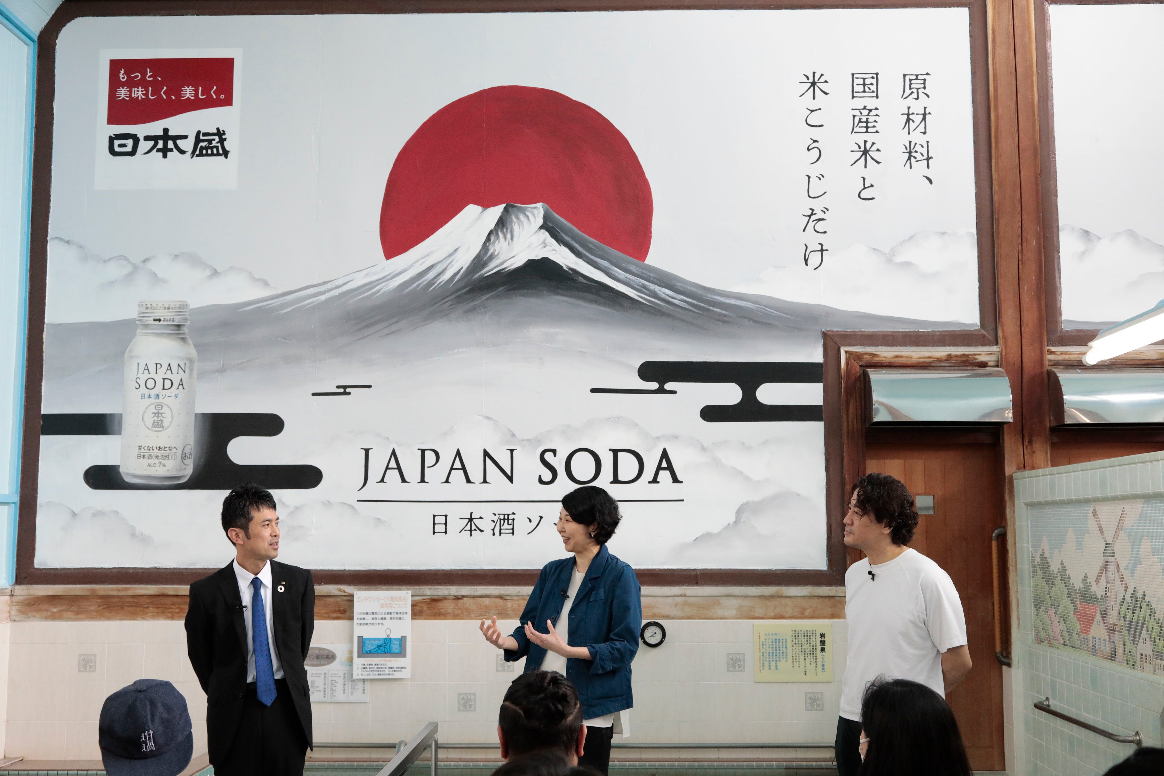 甘さ控えめの日本酒ソーダ「日本盛 JAPAN SODA」3/28全国発売!記念イベント開催。銭湯ペンキ絵師・田中みずき、自称銭湯の神・ヨッピー、日本酒や銭湯について熱くトーク!
