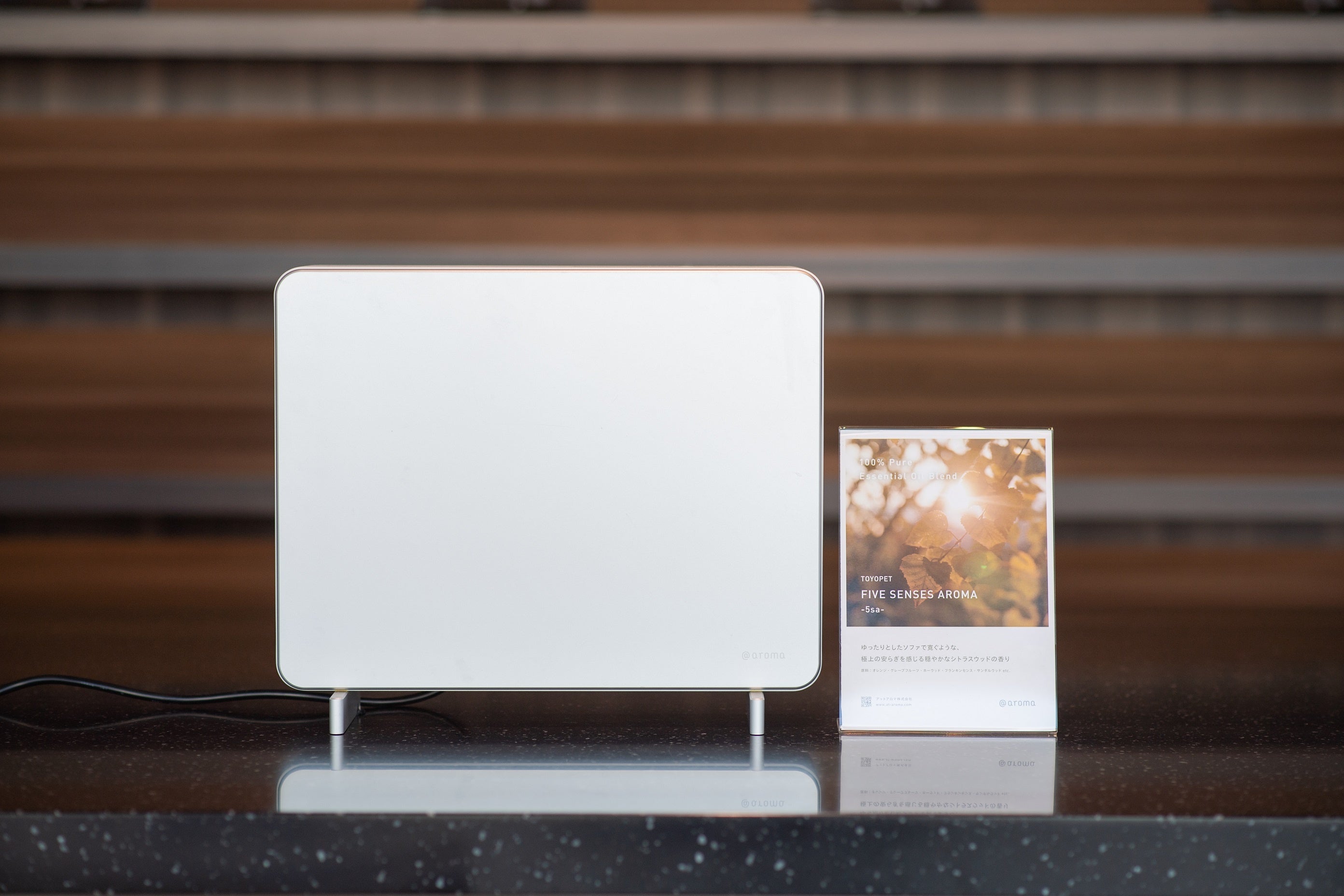 車検や点検で来店するお客様に、ホテルや空港のラウンジで過ごしているような気分を味わっていただきたい、という想いからはじめた香りの空間演出。ぜひ、ご自宅でもお楽しみください。心地よい香りに包まれるだけで、いつもの空間が素敵になり、豊かな時間をお過ごしいただけます。
