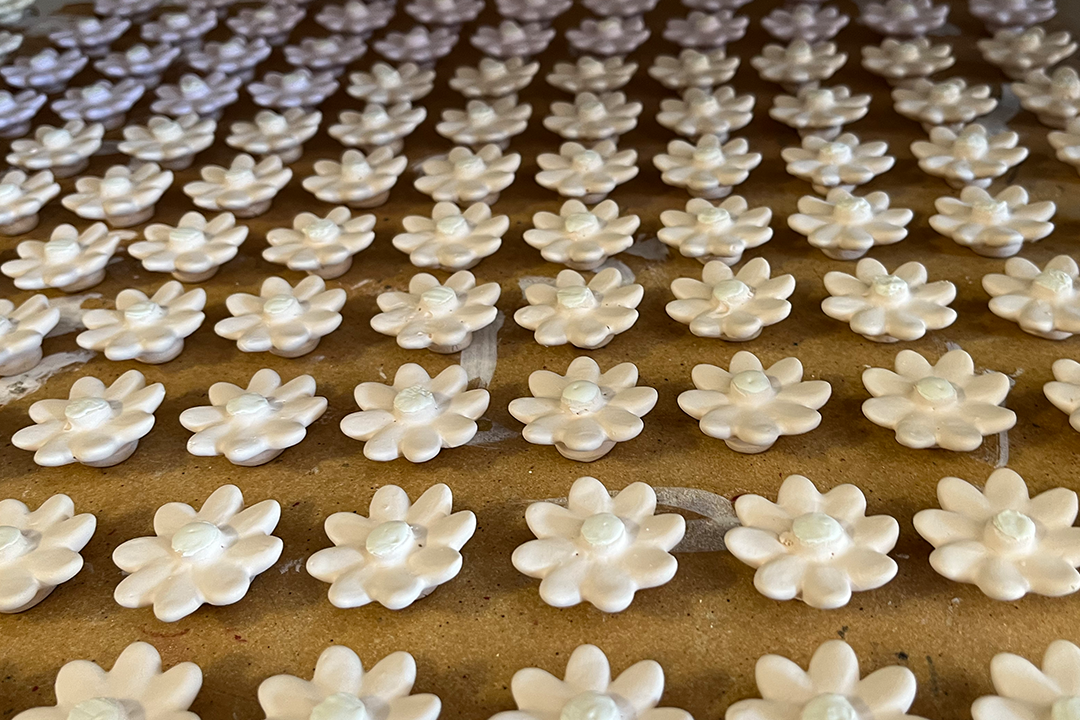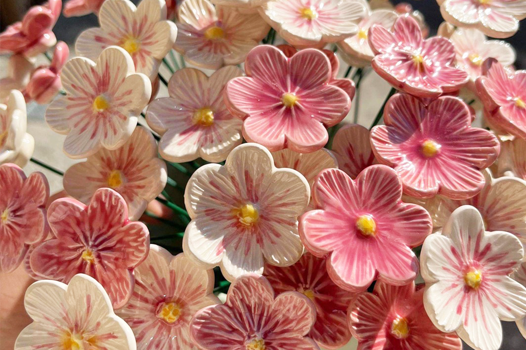 中目黒Podium Cafe(https://www.instagram.com/podium_cafe/?hl=ja)では実際に陶器の花を手に取ってご覧いただくことができます。そのままプレゼントとしてお使いいただけるアソートパック(2300円)をご用意しています。