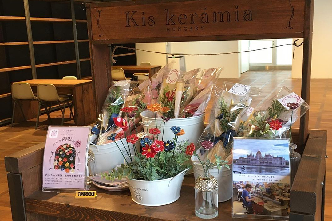 私たちがハンガリーの陶器の花と出会ったのは、ハンガリーの小さな陶器市でした。車でオーストリアに向かう途中の田舎道で偶然に開催されていた陶器市で、美しい陶器の花に目が留まり、「これだ」と運命的な出会いを感じました。すぐさまブタベストのドナウ川のほとりにある小さな工房に出向き、日本でこれを販売させてほしいと交渉し皆様にお届けすることが決まりました。