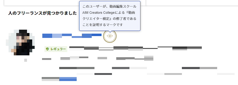 「AIM Creators College認証バッジ」はLancersのプロフィールに表示されます。
