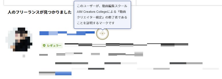 これまでもAIM Creators College卒業生は、Lancersにおいて高い満足度とリピート受注を獲得してまいりました。今回のAIM Creators College認証バッジは、過去の当スクール卒業生の実績と活躍に対し、ランサーズ様より高いご評価をいただいたことによる導入となります。