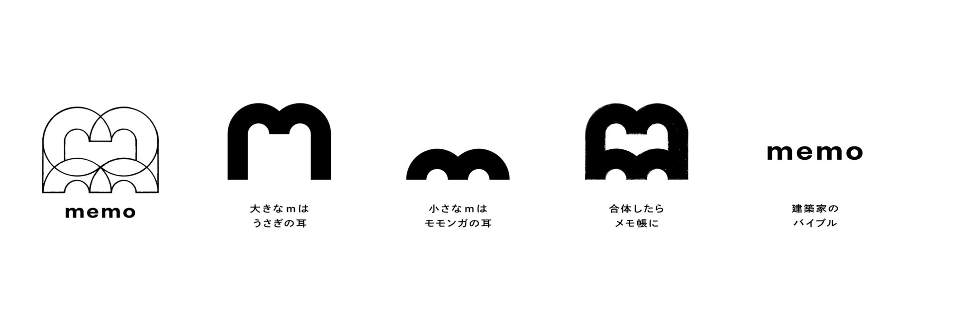 コーポレートロゴでは、大きなmを表すウサギの耳と、小さなmを表すモモンガの耳が合体して、メモ帳を作り出すデザインとなっています。フォントは建築設計の仕事をする人であれば誰でもお世話になる「申請memo」から踏襲しています。