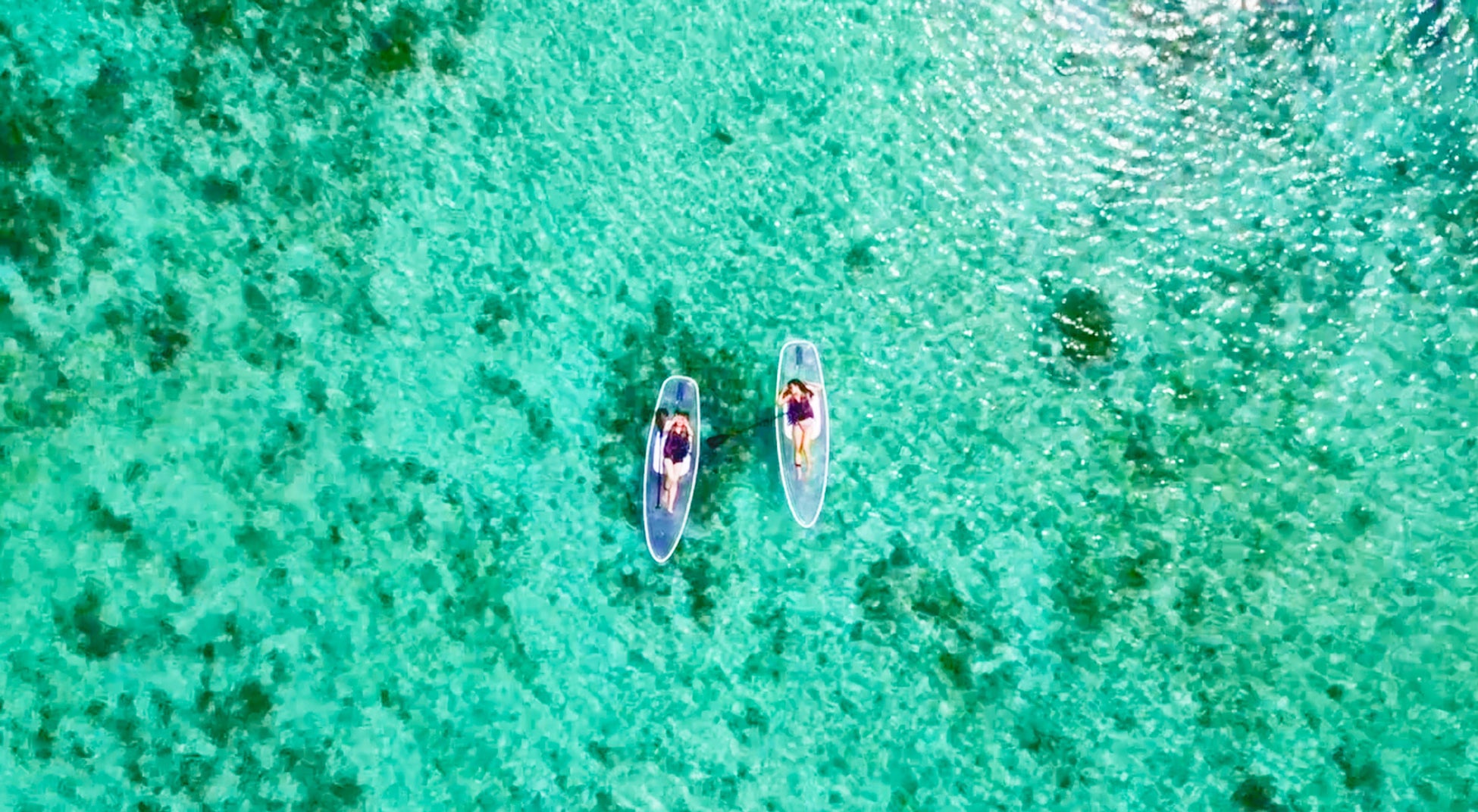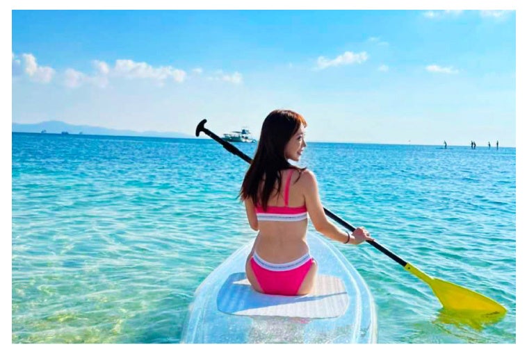 まるでイルカになったみたい!透明なサップに乗って沖縄の海で水上サイクリング!