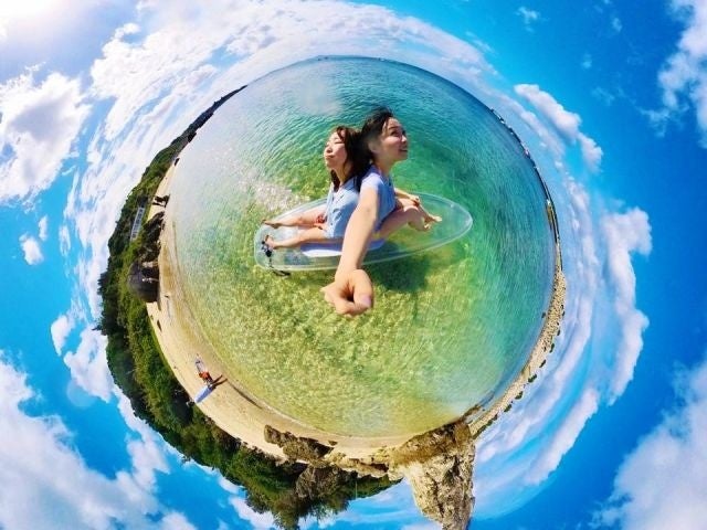 沖縄北部の美しい海(本部町、今帰仁村)で、今1番人気のアクティビティ【クリアサップツワー<360度カメラ+ドローン空撮込み>】最高の『映え体験』をお楽しみください!とてもいい思い出がつくれますよ!