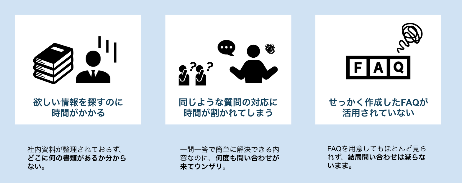 人事、総務、情シスなどの部署の担当者様とお話させていただく中で、以下のような悩みを伺うことが多々ございました。