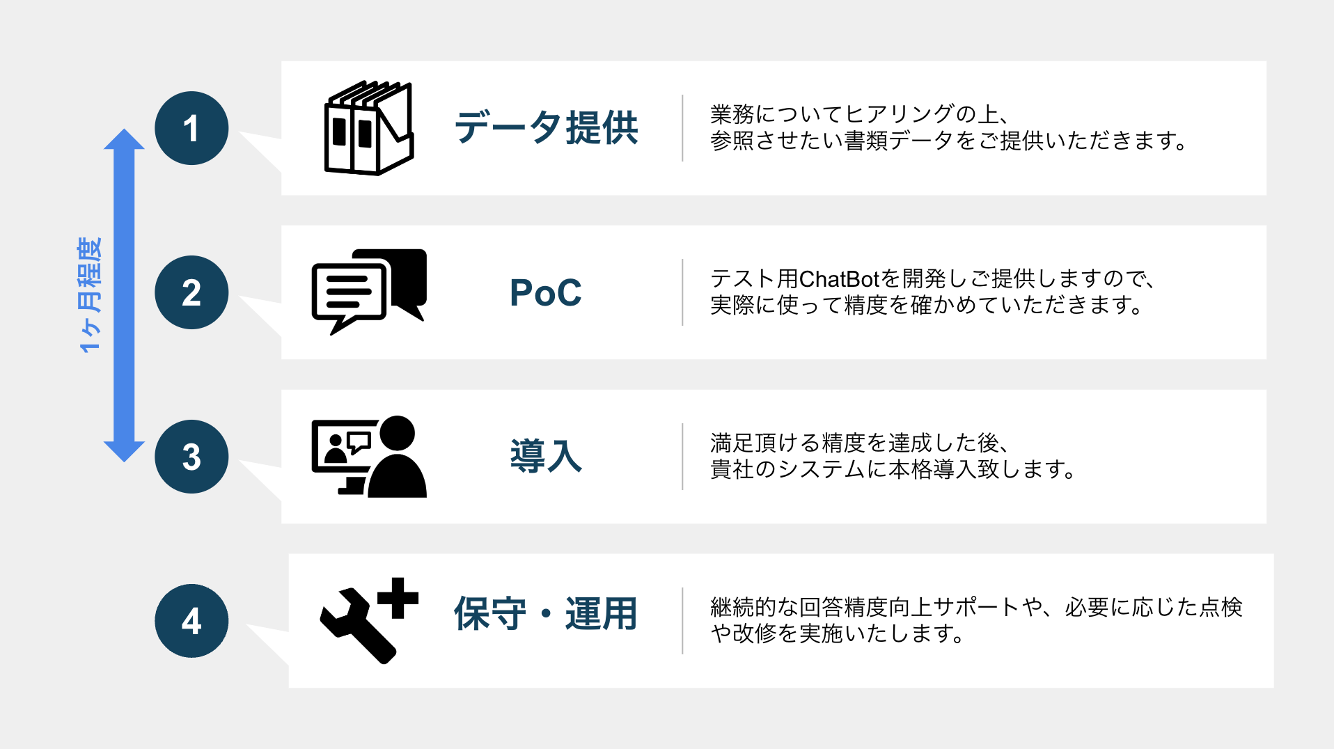 問い合わせから導入まで約1ヶ月、スピーディにご利用開始いただけます。