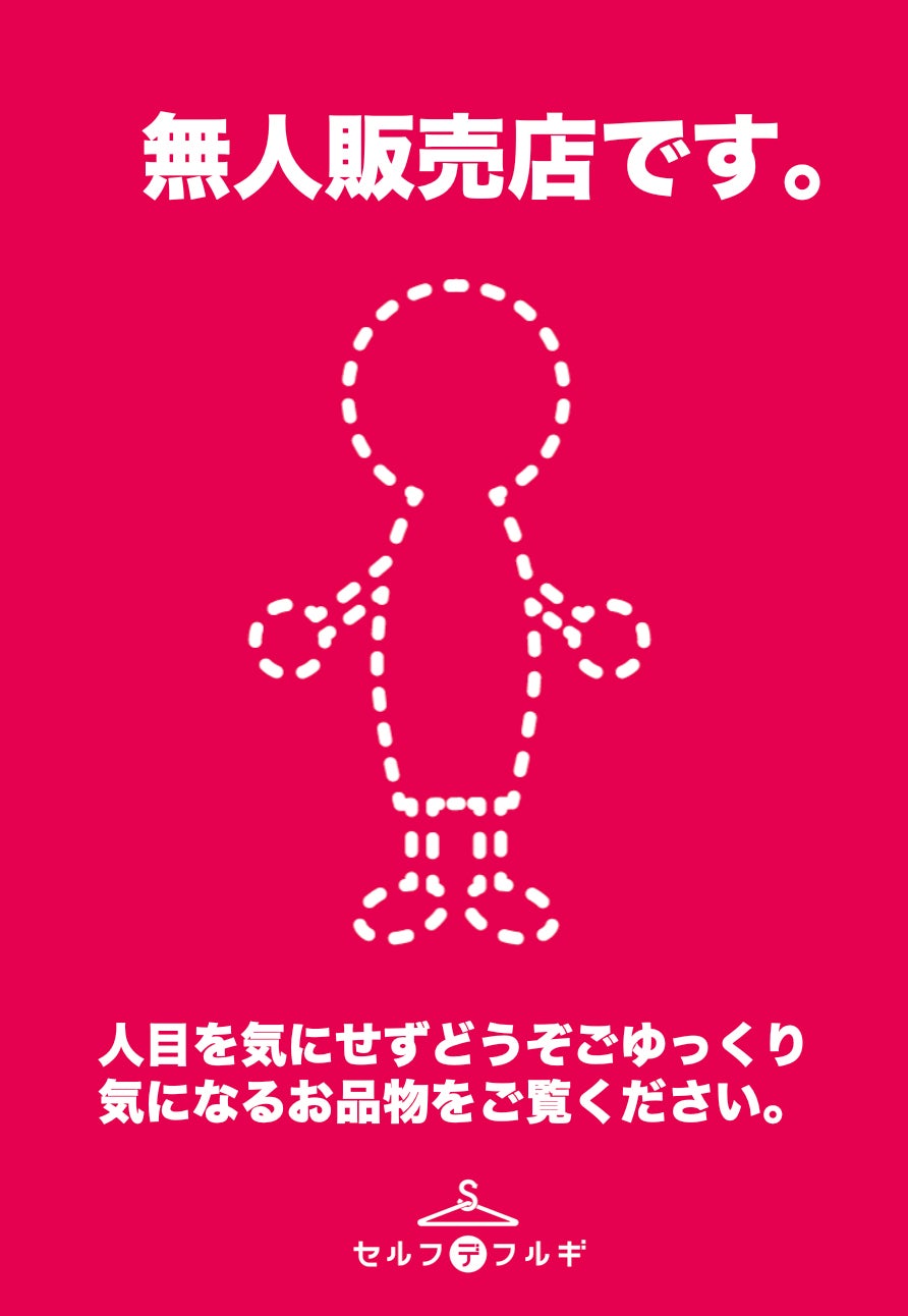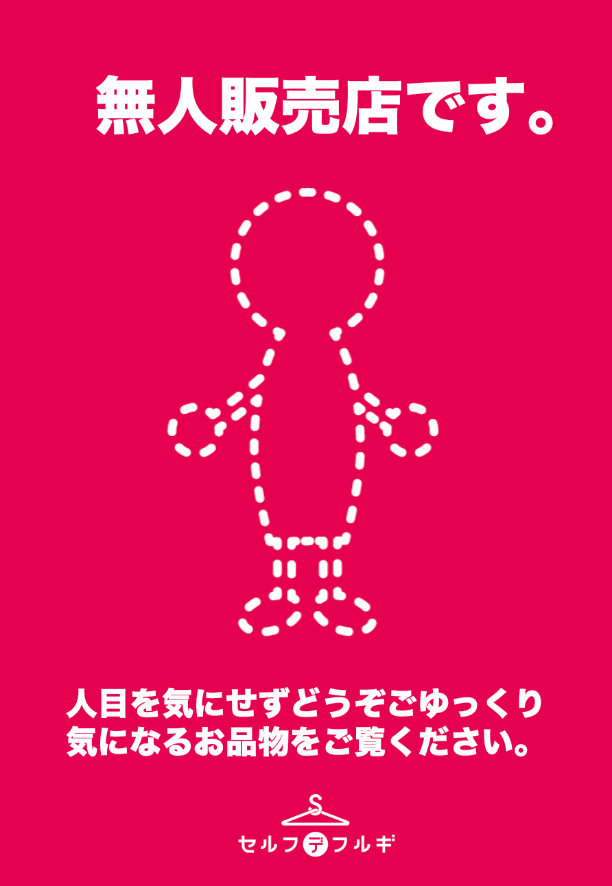 「セルフデフルギ」は、レディース・メンズ、未使用タグ付きも含む状態の良い古着を多数取り揃えた1000円均一の24時間営業の無人販売店第1号店となります。
