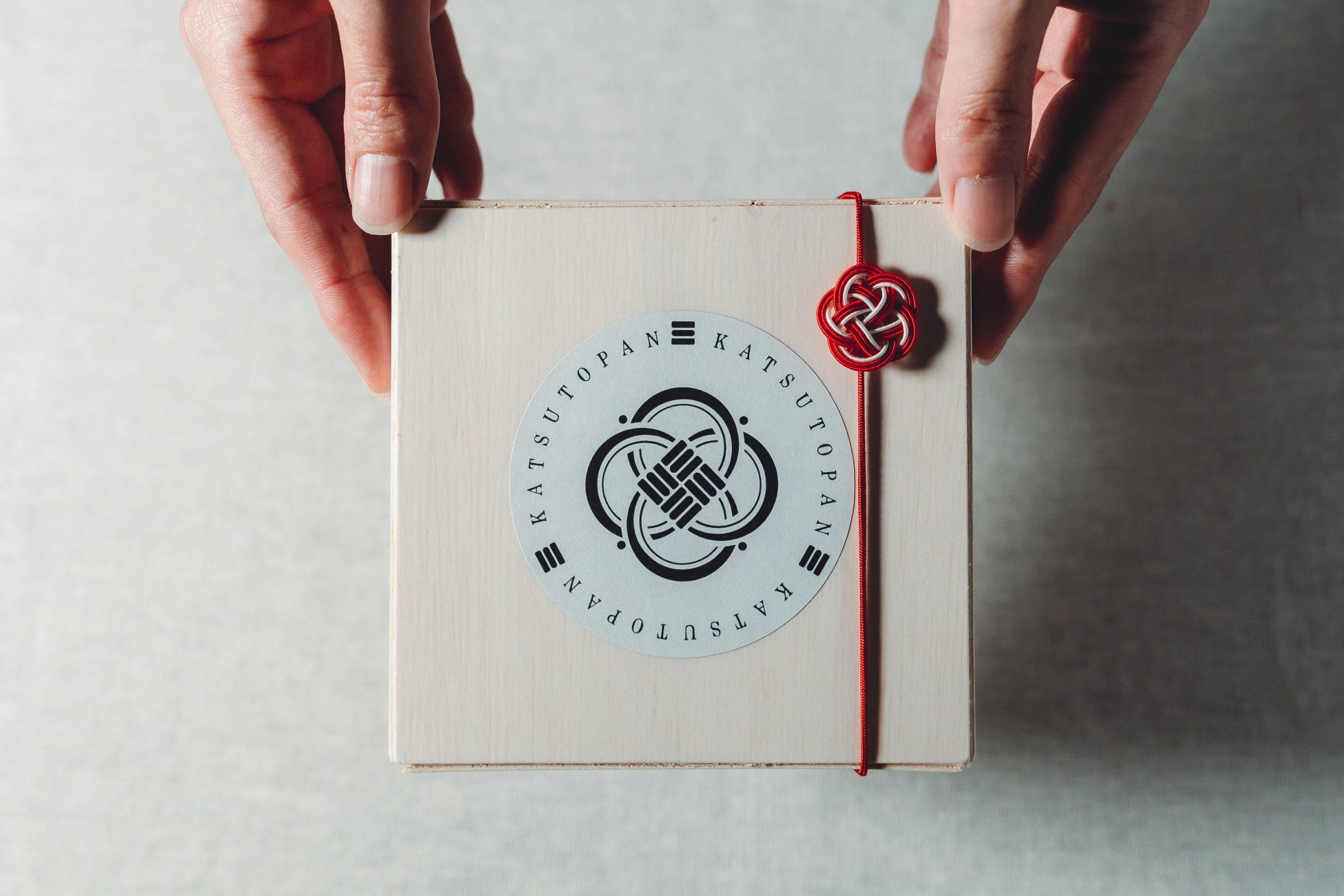 パッケージにもこだわり、“カツ=勝つ=縁起物”をイメージしたデザインに仕上げました。お土産やプレゼントにも、もらった人が嬉しくなる一品です。