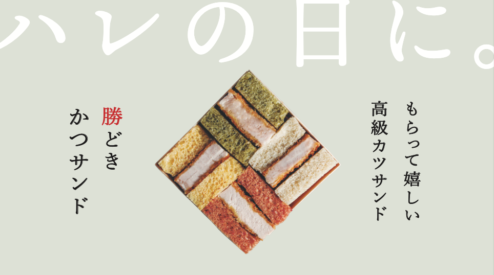 「勝」の言葉とともに贈る縁起物。「勝どき」の街の名前と「カツ」をかけた縁起の良い特別なカツサンドは、ハレの日に、勝負どきにぴったり。誕生日、記念日の贈り物はもちろん、ホームパーティのおもたせ、旦那様の大一番のお仕事の前に、お子さまの受験のお供に……大切なシーンで食べて頂きたいカツサンドです。