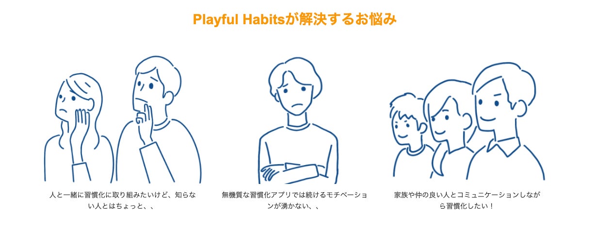 また、Playful Habitは家族や友人、同僚などで使っていただくことを想定していますが、その中でも特に以下のような思いを持つ方にフィットするアプリだと考えています。