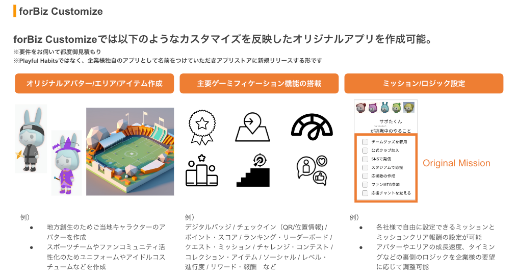 また同時に、法人向けプランである「Playful Habits forBiz」「Playful Habits forBiz Customize」も公開しました。