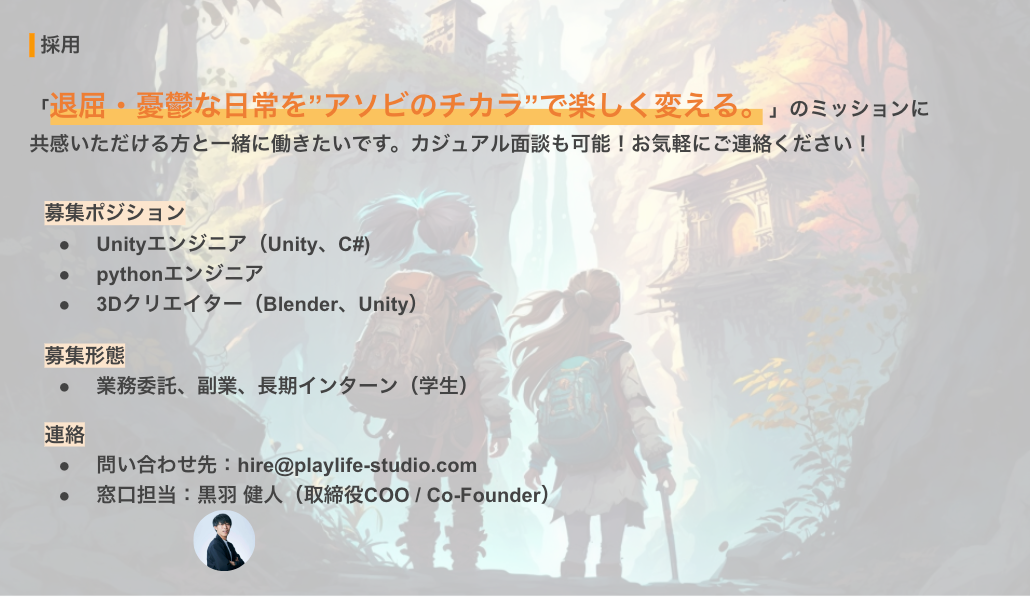 ・株式会社Play Life Studio 取締役COO 黒羽健人