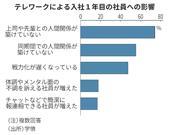 従来は、新入社員が入社すると、教育担当者がオフィスでコミュニケーションを密に取りながら、手取り足取りサポートすることができましたが、リモートワークではなかなかそうもいきません。
