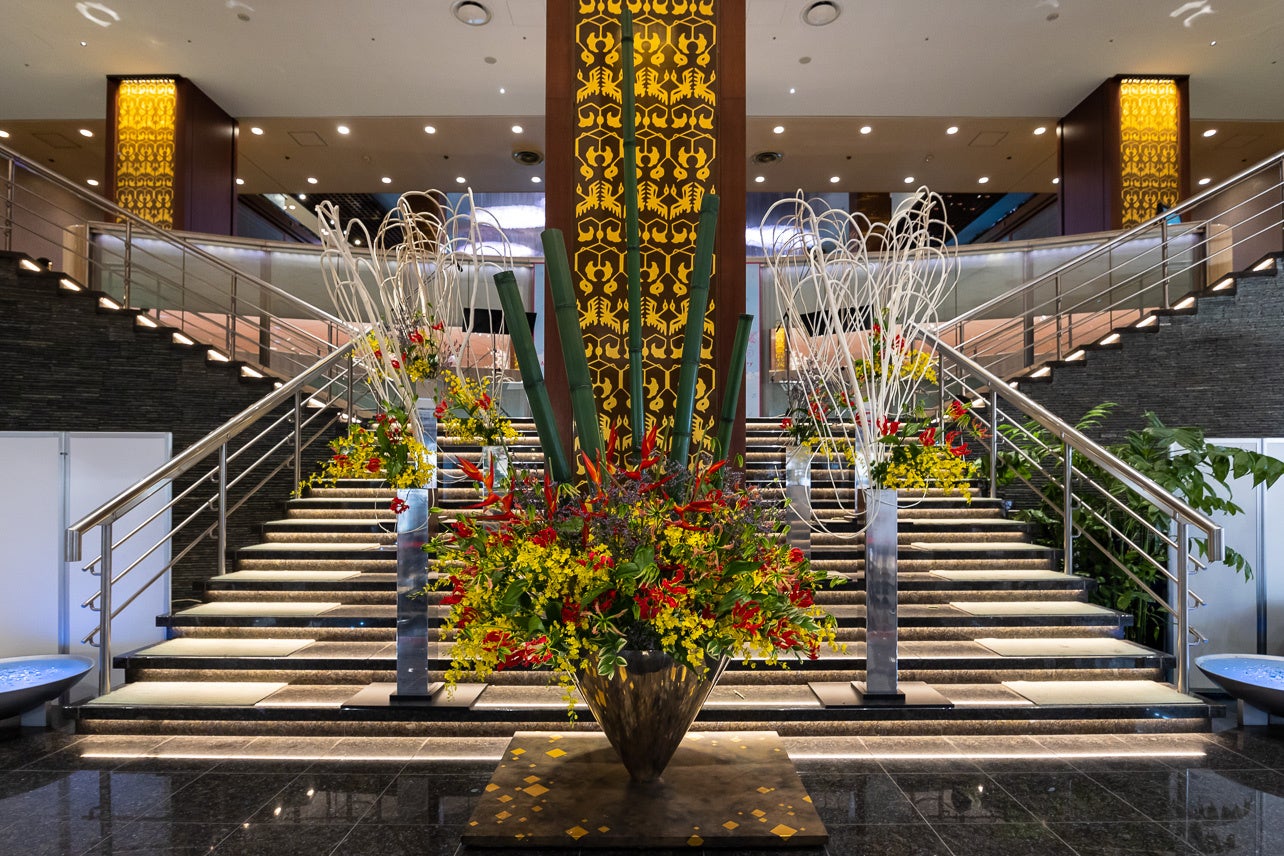 西ロビーに飾られた生け花インスタレション