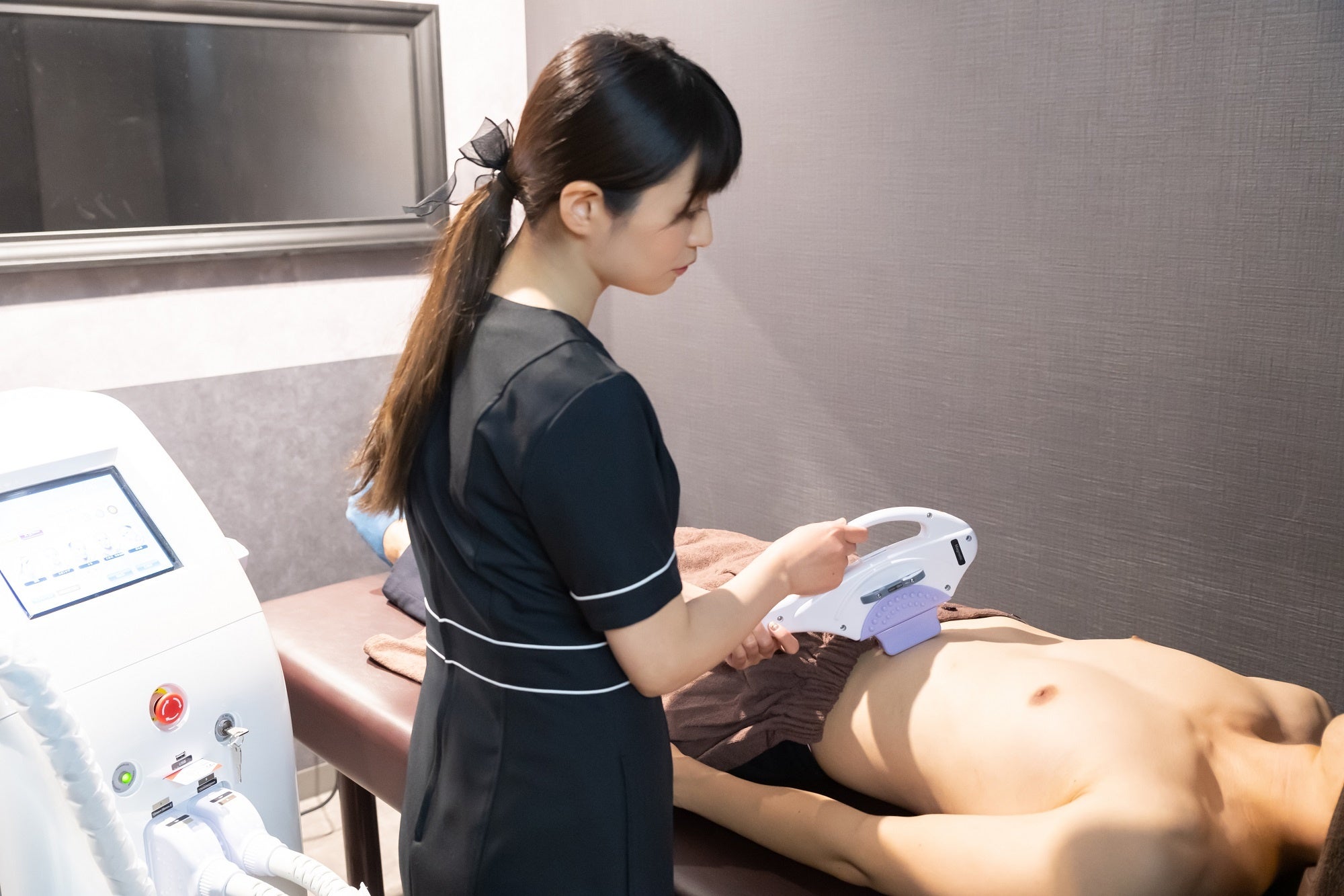 従来の脱毛機だと長時間苦痛に耐えていたヒゲ脱毛も、当店のマシンならスピーディーに完了! 全身脱毛でも、お客様1人あたりの施術時間が短いので、お忙しい方にもおすすめです。