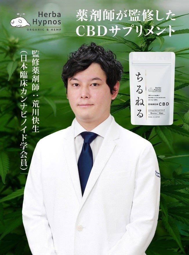 日本臨床カンナビノイド学会所属の薬剤師・荒川快生が患者様の声を基に商品化したCBDブランド「HerbaHypnos」からCBDサプリメント「ちるねる」発売中!