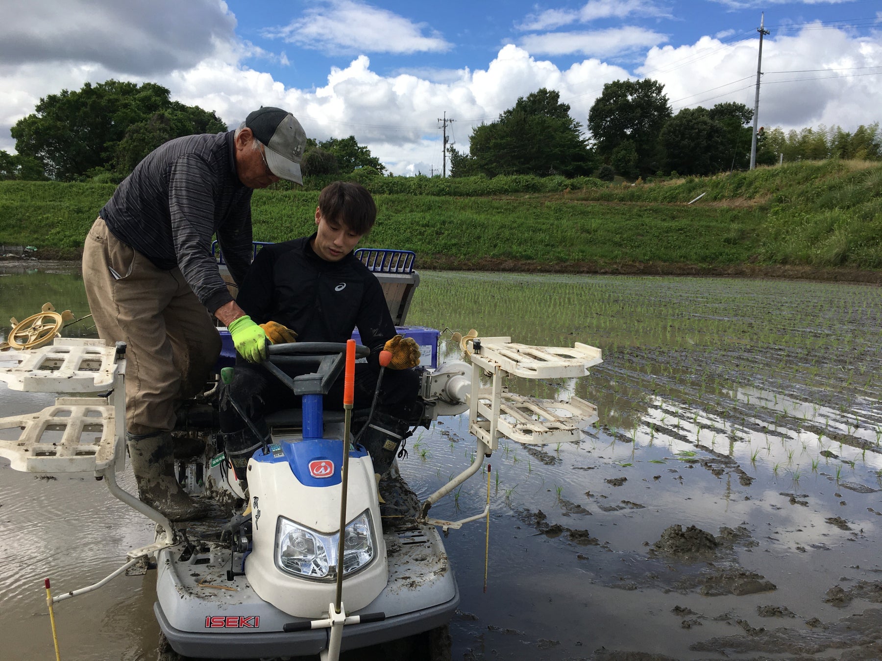 田植え:農家の高齢化や担い手不足を支援するため若い力で楽しく笑顔でお手伝いいたします。