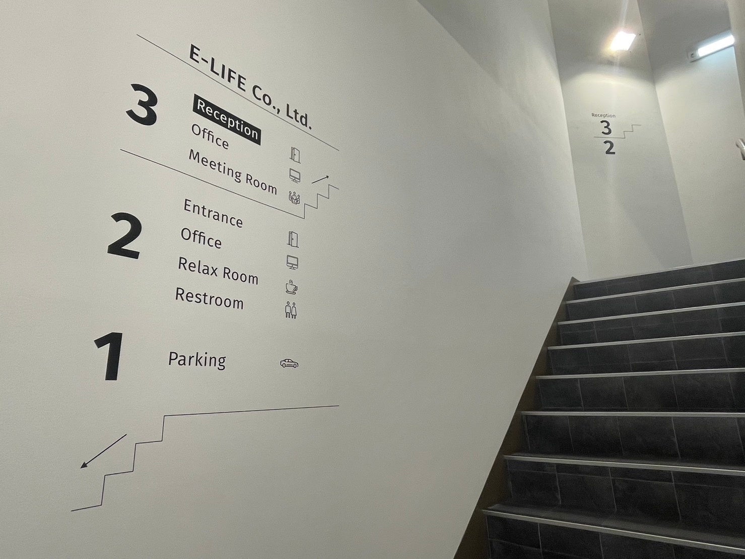 3階へとつながる横浜営業所の階段の踊り場