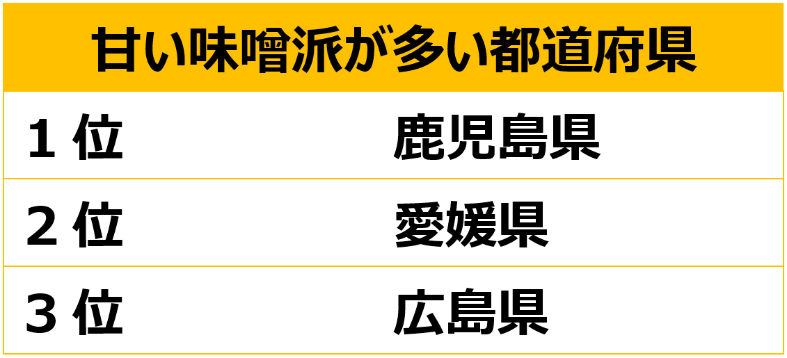 1.「味噌は甘い派」が過半数!甘い味噌派が多い都道府県ランキング1位「鹿児島県」