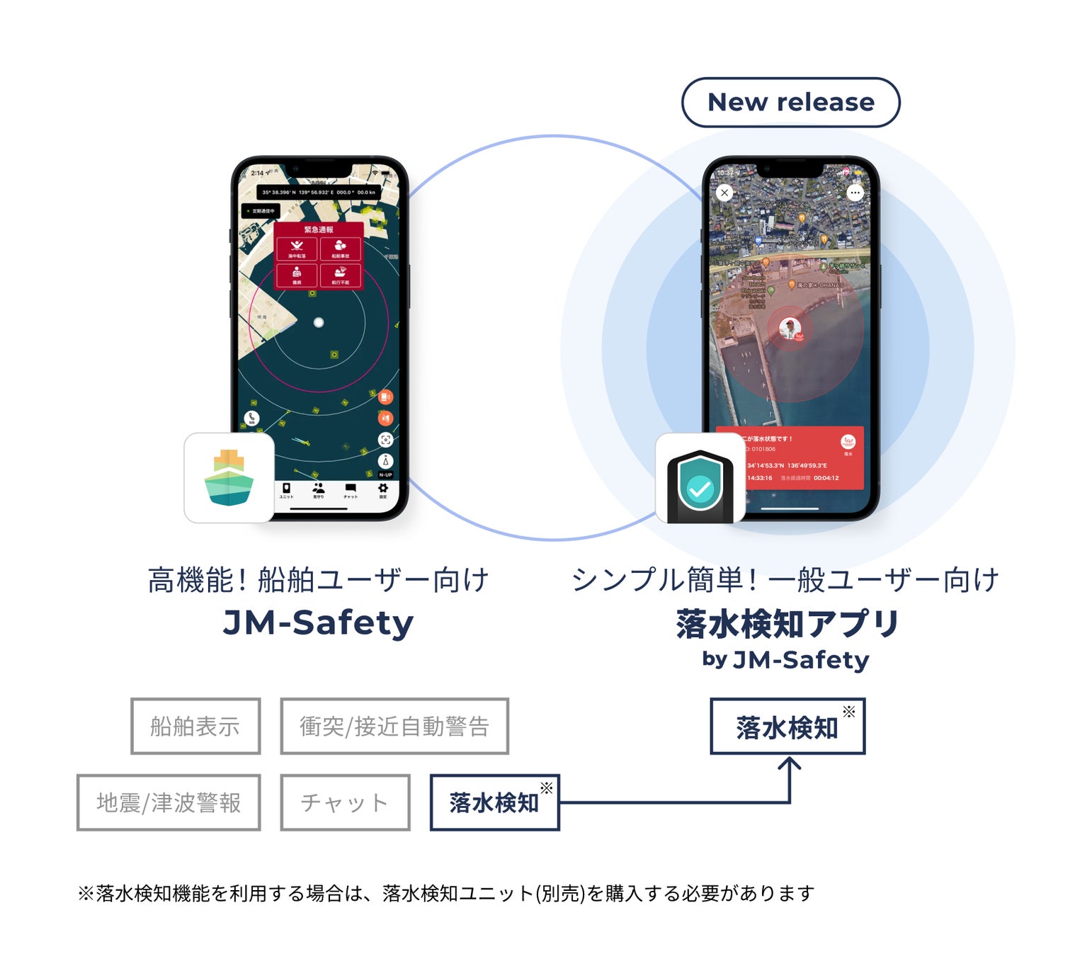 そこで今回、JM-Safetyが持つ高精度な落水検知機能のみに特化することで、船舶を運用しない一般ユーザーでも、より簡単に「海上での安全・安心」を手に入れることができるように、落水検知アプリをリリースしました。