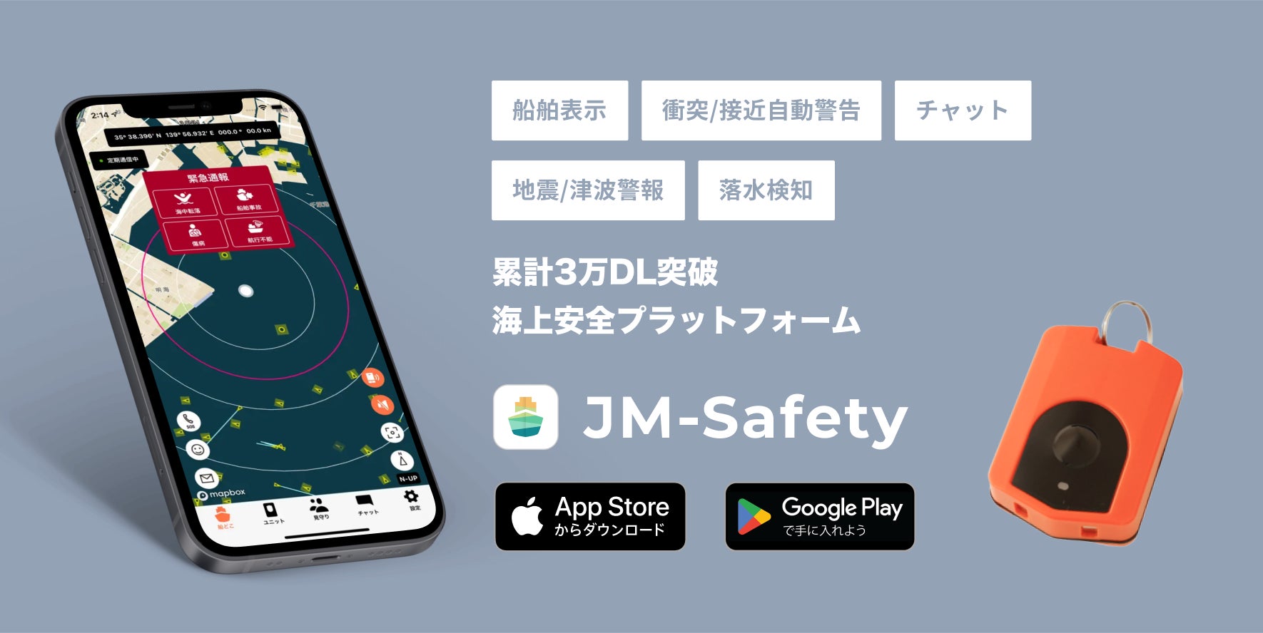 日清紡ホールディングス株式会社は、誰もが安全に日本の海を安全に楽しめるよう、これらの課題に対する解決策として、船舶ユーザー向けに「船舶位置情報表示」「衝突接近自動警告」「地震津波警報」「チャット機能」などの機能を搭載した、高機能な情報プラットフォームソリューション「JM-Safety」を提供して参りました。おかげさまでこれまで船舶運航者を中心に利用いただき、「JM-Safety」の累計3万ダウンロードを突破。海上運行の安全に寄与して参りました。