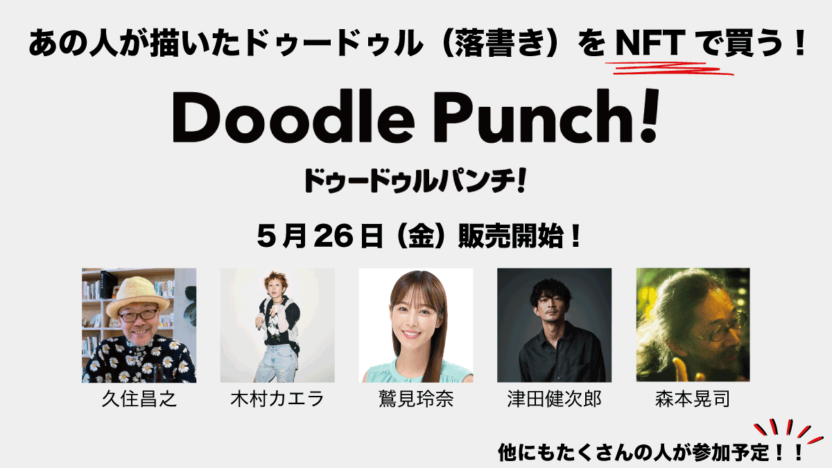 あの人が描いたドゥードゥル(落書き)をNFTで買う!『Doodle Punch!』5月26日(金)よりサービス開始。久住昌之・木村カエラ・鷲見玲奈・津田健次郎・森本晃司などが参加予定。
