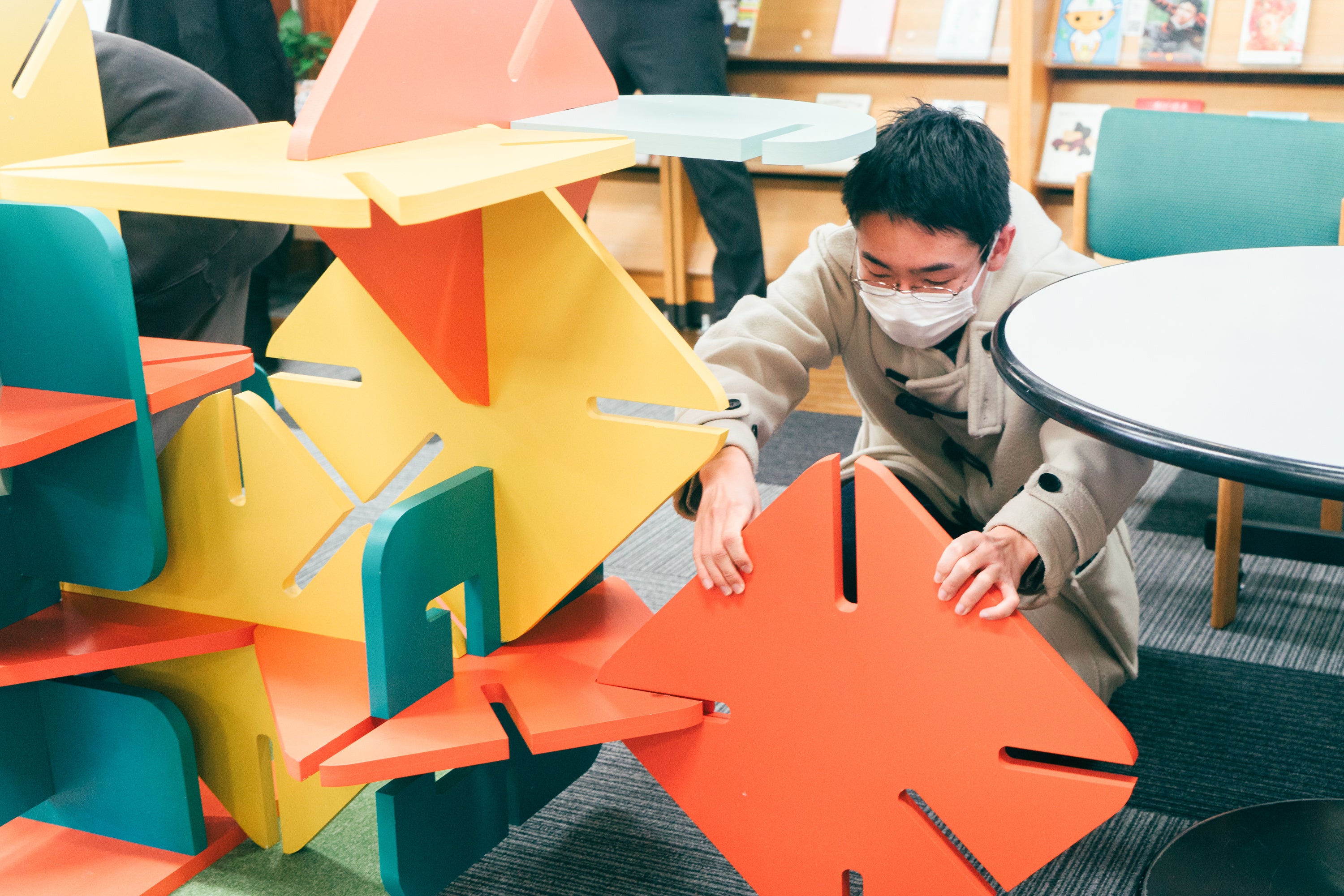 本学の図書館を象徴するシンボリックな書棚が欲しかった。デザインは鈴木舞さんに完全におまかせでできた『GOOD RACK』は、想像を超える素晴らしいものでした。縦長にも横長にも作れる、自由自在でカラフルな書棚は、本学の「こえる人、こえる大学」というポリシーの広報活動やブランディングにも役立っています。『GOOD RACK』が大学に届いたときには、見たこともない色とりどりのボードのあまりの可愛さに、人だかりができました。イベントでは、大人も子供も一緒になりながら、「こうしたら?」「ああしたら?」と楽しみながら創りました。完成後は、どの本をどう置くか、いつのまにか、話題は本に。本が好きな子はお気に入りの本を飾り、その子の友人はその子の置いた本を読みに来たり、本棚がひとつの起点となって、人が繋がっている様子ができてきました。学生と教職員のコミュニケーション。新たな価値を生むクリエイターさんの存在。今までにない書棚。何もかも、素敵な学びでした。[高崎商科大学 広報・入試室SV(スーパーバイザー) 鈴木洋文]