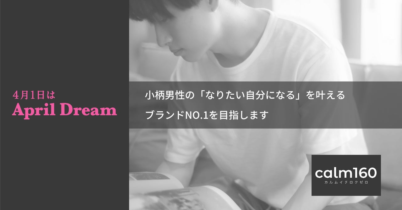 夢の実現のため、2023年4月1日(土)本日より、ブランド名を「calm」から「calm160(ヨミ:カルムイチロクゼロ)」といたします。これまでよりもさらに、160cm前後男性のためのブランドであることを多くの人に理解していただけるよう、ブランド名にもその意思を込めました。