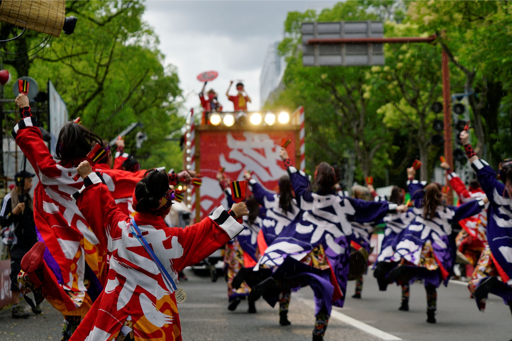 ※1 地方車(じかたしゃ)とは、音響機材を載せて、装飾を施したトラックのことです。チームの先頭で踊り子を先導するので、チームの象徴とも言われます