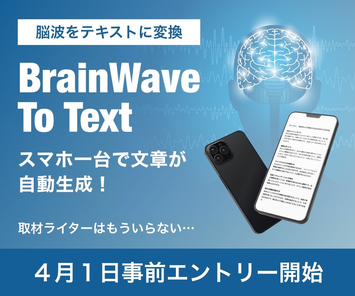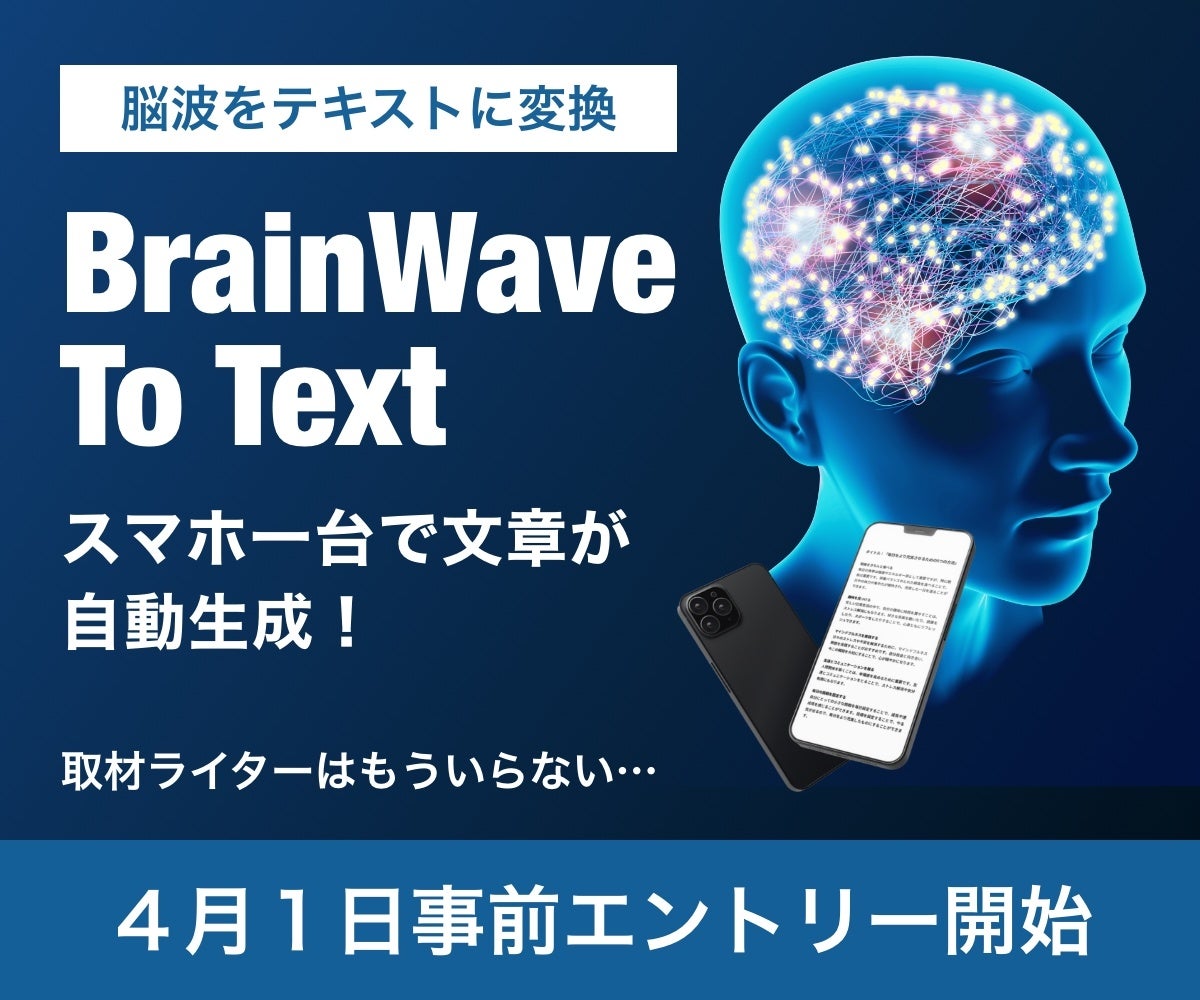 脳波をテキストに変換するサービス「BrainWave to Text」 事前エントリー開始!取材ライター不要で文章が完成する!