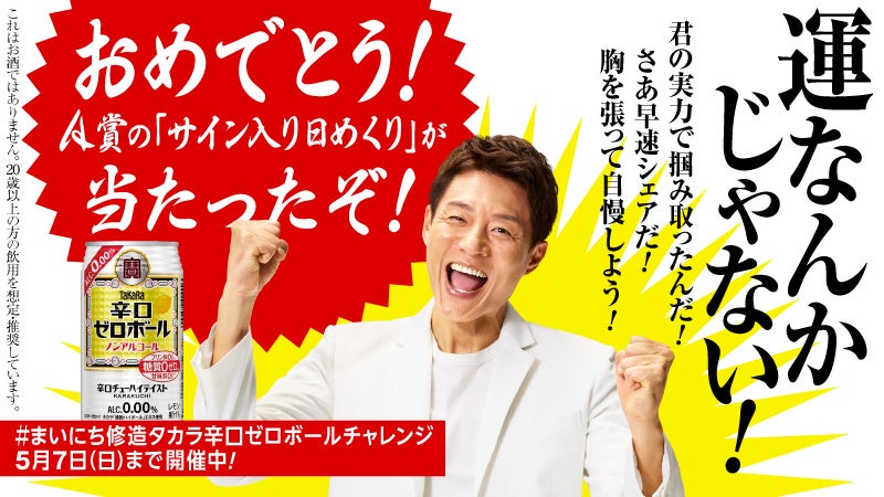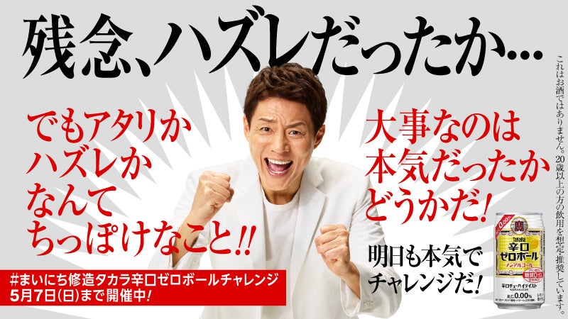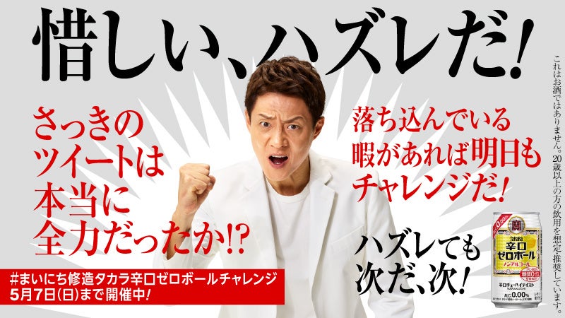 また、Twitterで「#まいにち修造 タカラ辛口ゼロボールチャレンジ キャンペーン」を展開しており、毎日当選者が発生するこのキャンペーンは、応募したその場で結果がわかるスリル感を楽しんでいただける上、外れても修造さんのメッセージに励まされて、なぜか元気がもらえる。明日も違うメッセージを見たい!など、様々な声をいただいております。