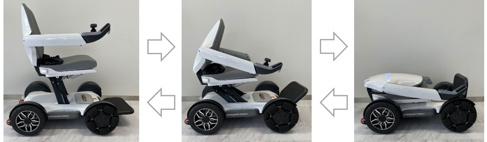 ボタン操作一つで、電動カートの折り畳み/復元ができます。