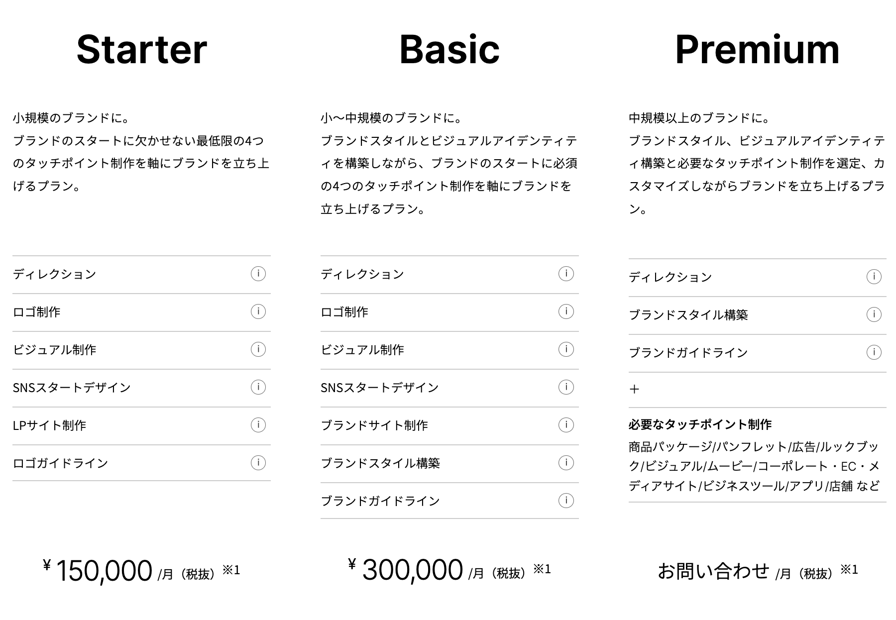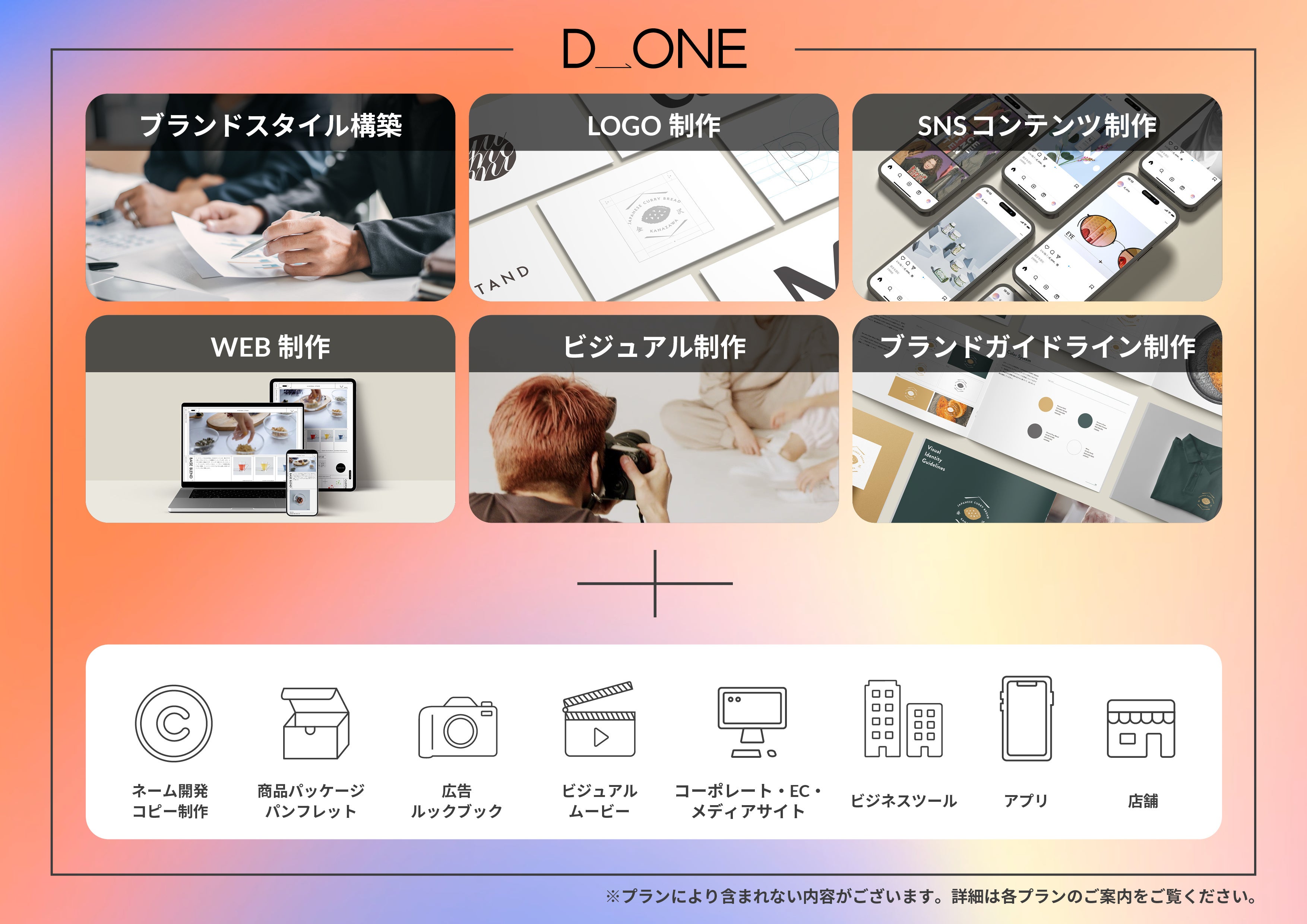ブランド立ち上げはコンセプトを作るだけで何百万。大きな会社だけがやるものと思っていませんか?D_ONEはお客さまの規模に合わせたプランをご用意しています。明瞭な料金設定とサブスクシステムにより、少ない予算で始められ、最大の効果を得られます。