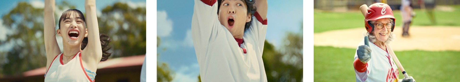 そんなハートフルなコミュニケーションの後、「あ、自由の味だ!」と、再び“ジムビームハイボール”を味わう賀来さんと井桁さん。そして「カキーン!」と快音が響き、見事なヒットを打ったおばあさんバッターが駆け出す中、賀来さんと井桁さんも大喜びでガッツポーズ。高揚感で満たされた球場に、「ジムビーム」の爽快でアクティブなイメージがマッチし、心を自由に解放する楽しさが描かれています。
