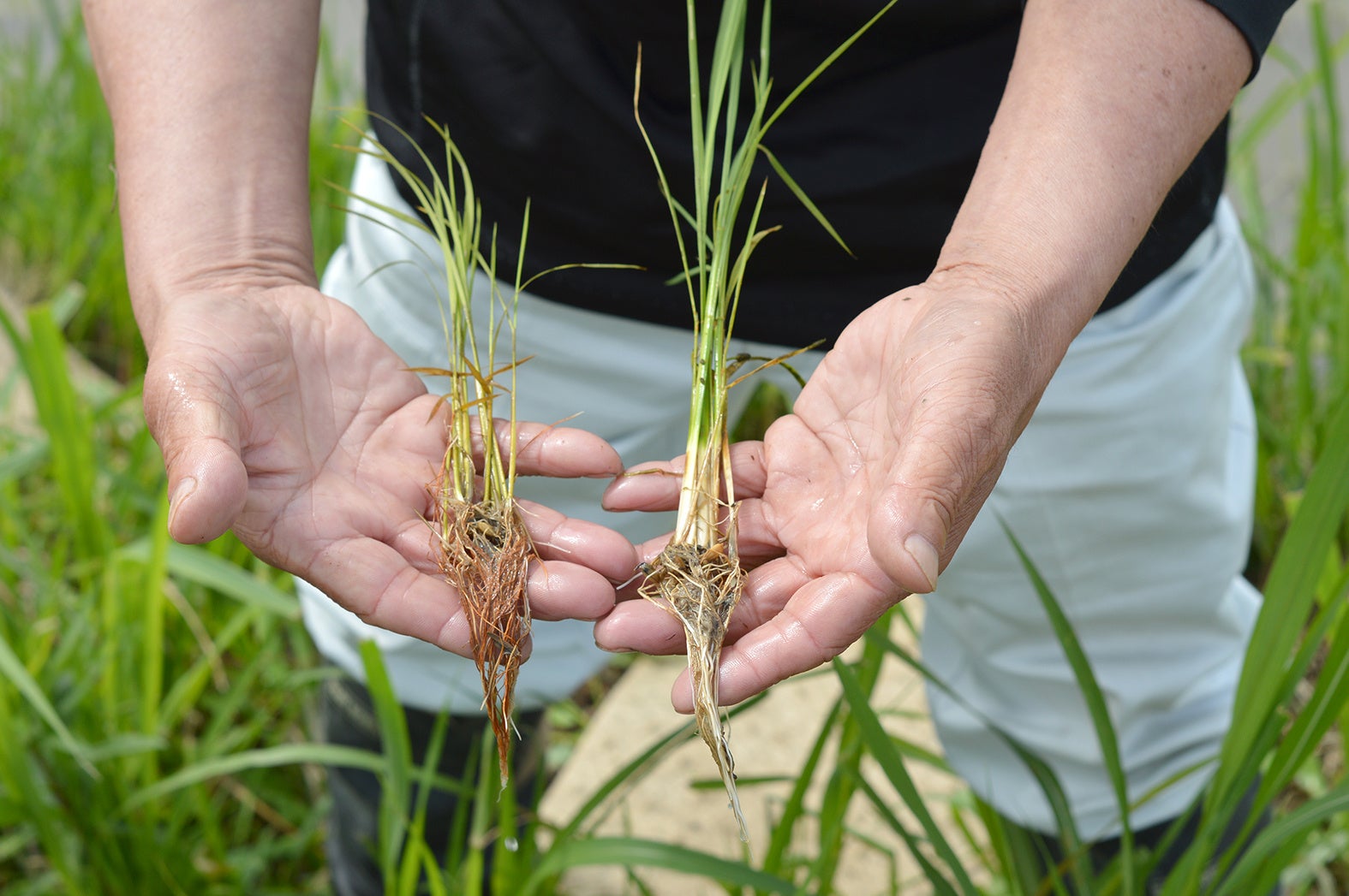 (根や茎の太さの違いや土壌の酸化具合などが根の色でわかる)