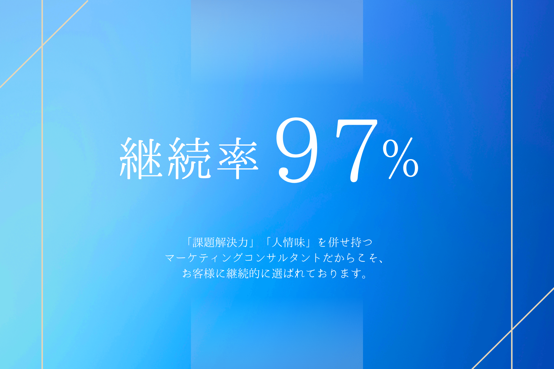 圧倒的なWebマーケティングノウハウとクリエイティブノウハウでお客様にご満足いただき、継続率97%を維持しております。