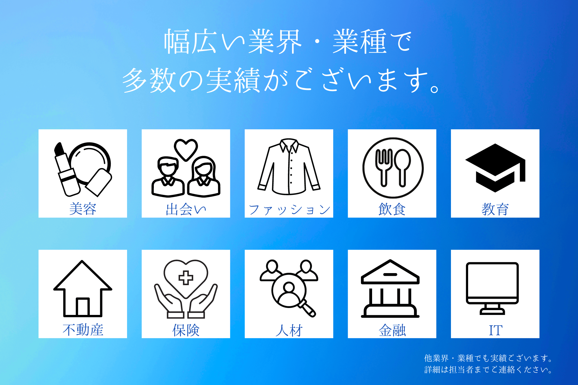 FacebookやInstagramを中心にGoogle、TikTok、Yahoo、LINEなど幅広いWebマーケティングでの実績がございます。