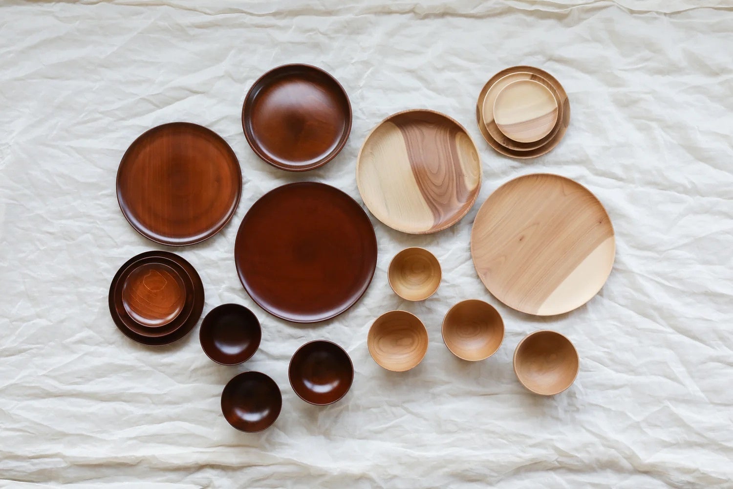 素材本来のあたたかみと、熟練された職人によって一つずつ手仕事で作られたテーブルウェアは永く使い続けられる一品。木目が全て違い、一つとして同じものはありません。使い続けるほどに手に馴染み、かけがえのない食事のパートナーになります。