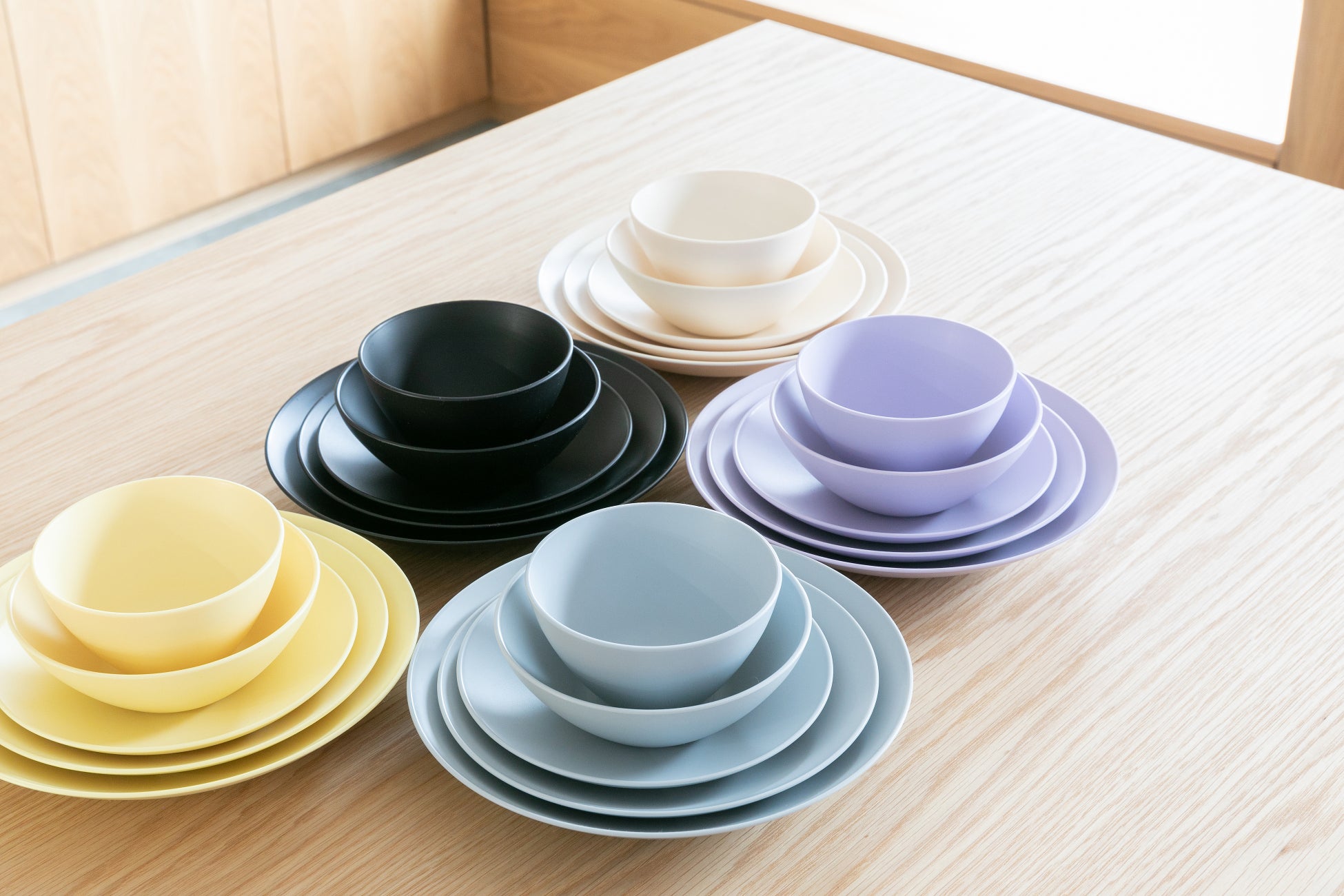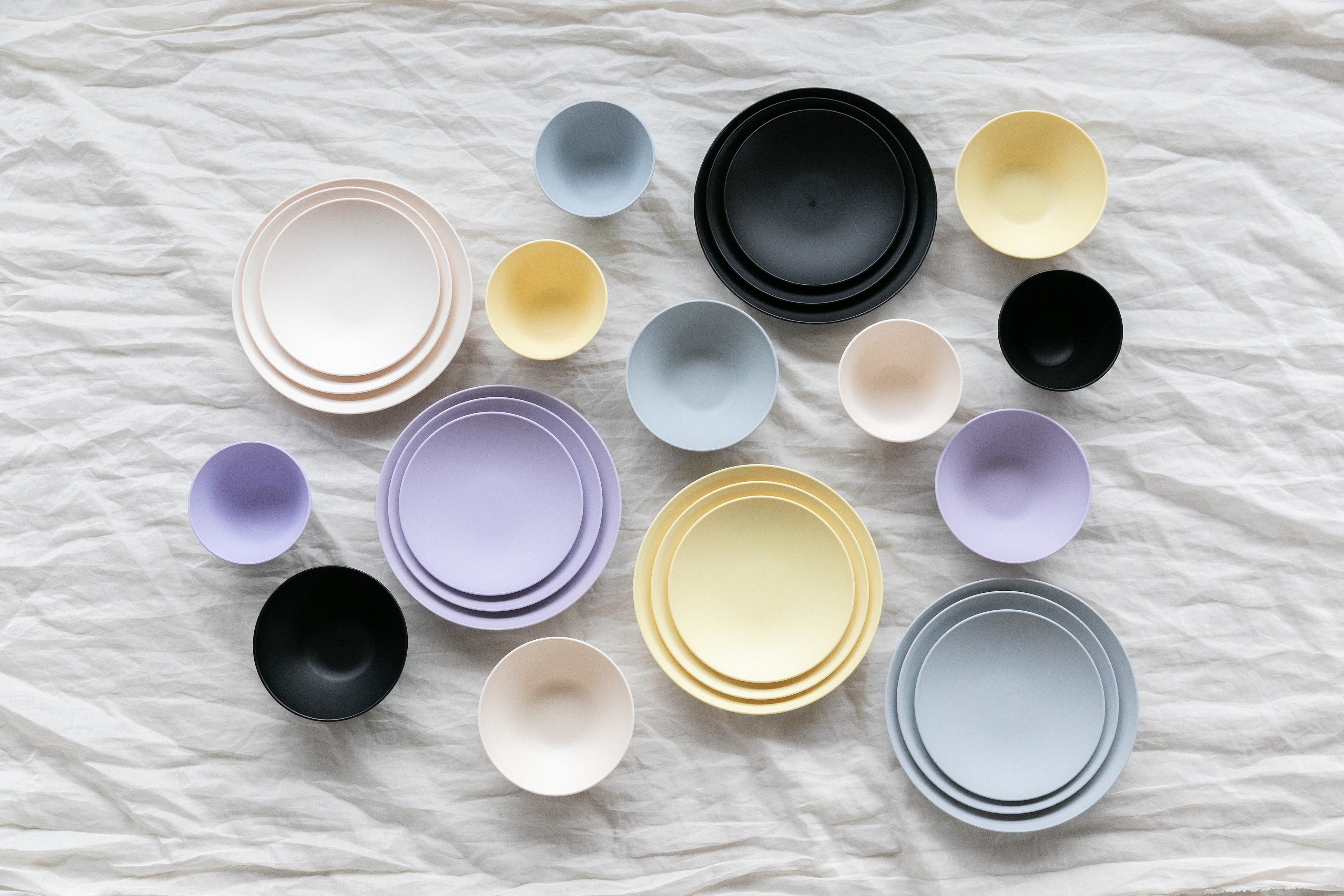 豊富なカラーリングと、陶器にも遜色ないフォルム。バイオマスプラスチックを使用しているので割れる心配もありません。お子様からご年配の方まで、幅広い年齢層にお使いただけます。