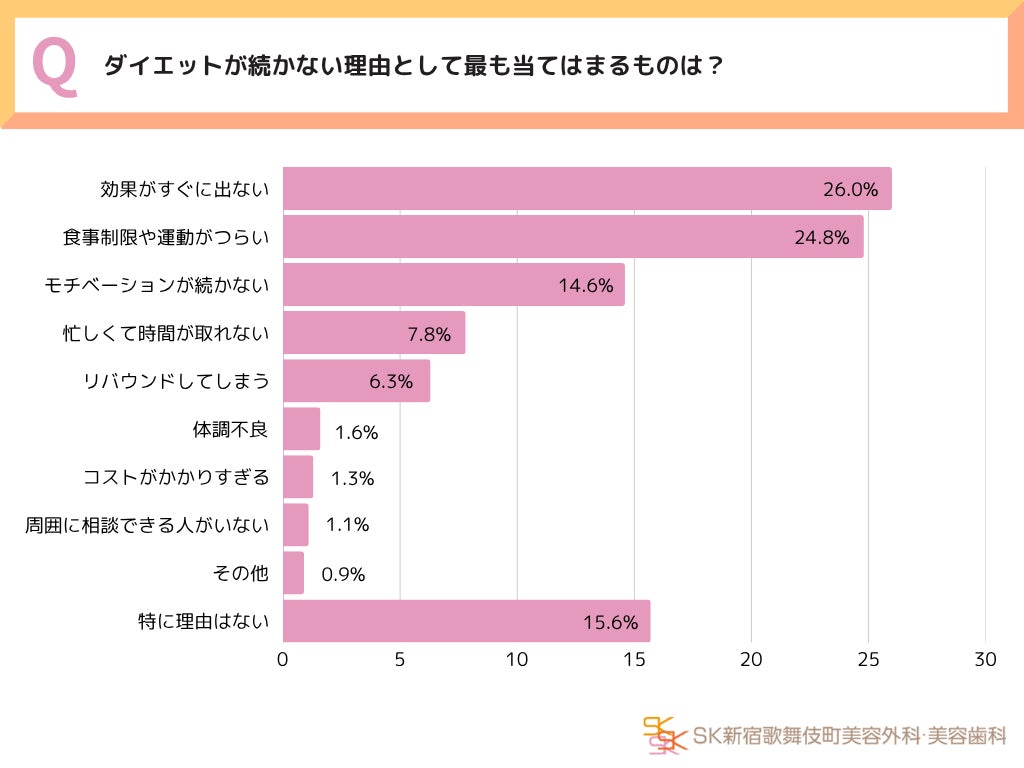 ダイエットが続かない理由の最多は「効果がすぐに出ない」(26.0%)